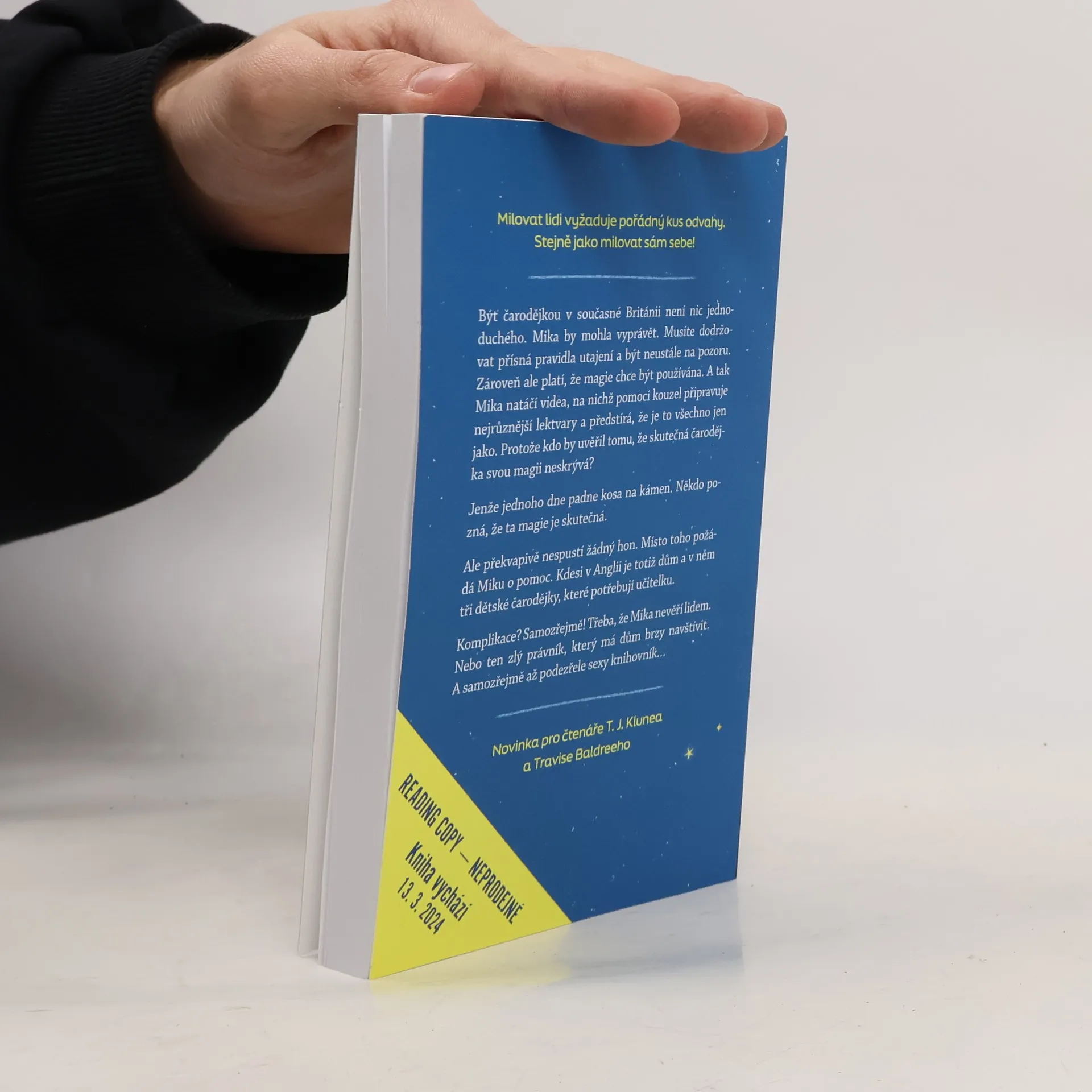 Pravidla čarodějek jsou jasná – v zájmu přežití na sebe neupozorňovat, být co nejopatrnější a moc se nedružit ani s ostatními čarodějkami. Protože kde je čarodějek víc, tam šijí s magií všichni čerti. No jo, jenže co dělat, když vás osazenstvo jistého domu prokoukne? Ne, nechce vás upálit ani utopit ve vašem rybníčku s koi kapry. Je to mnohem horší. V tom domě totiž vyrůstají hned tři malé čarodějky. Bez výcviku. A za pár týdnů má dorazit právník, na jehož rozhodnutí závisí osudy všech v domě. A jasně, rozhodně v čarodějky nevěří, a pokud by v ně uvěřil, chtěl by ty monstra smazat z povrchu zemského. A tak Mika sbalí do svého autíčka všechen svůj majetek – včetně toho rybníčku a koi kaprů (magie, co se divíte?) a vyráží na záchranně-vzdělávací misi. Čelit dětem, právníkům, hněvu nejstarší čarodějky v Anglii i zatraceně pohlednému Irovi. Co by se mohlo pokazit?