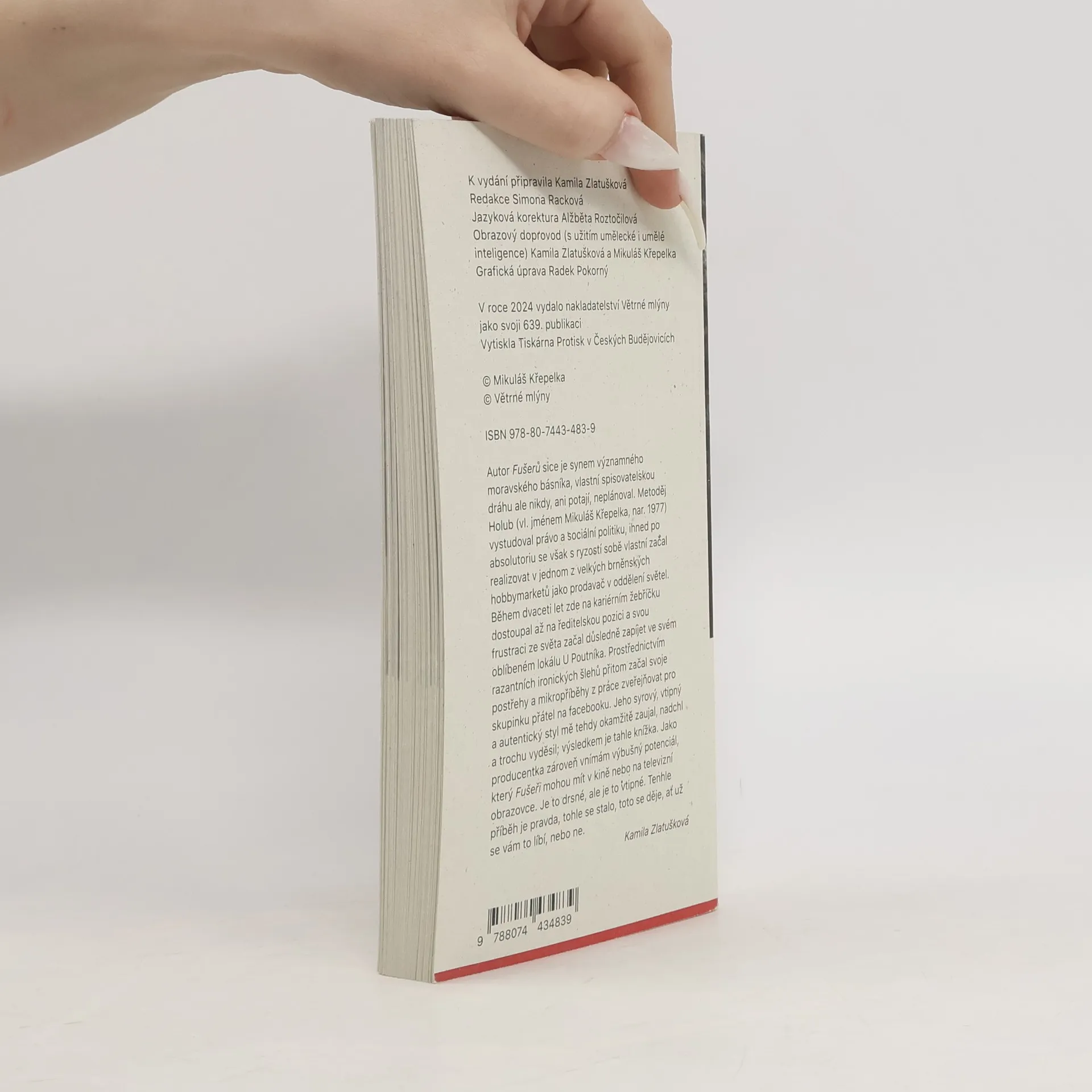 Autor Fušerů sice je synem významného moravského básníka, vlastní spisovatelskou dráhu ale nikdy, ani potají, neplánoval. Metoděj Holub (vl. jménem Mikuláš Křepelka, nar. 1977) vystudoval právo a sociální politiku, ihned po absolutoriu se však s ryzostí sobě vlastní začal realizovat v jednom z velkých brněnských hobbymarketů jako prodavač v oddělení světel. Během dvaceti let zde na kariérním žebříčku dostoupal až na ředitelskou pozici a svou frustraci ze světa začal důsledně zapíjet ve svém oblíbeném lokálu U Poutníka. Prostřednictvím razantních ironických šlehů přitom začal svoje postřehy a mikropříběhy z práce zveřejňovat pro skupinku přátel na facebooku. Jeho syrový, vtipný a autentický styl mě tehdy okamžitě zaujal, nadchl a trochu vyděsil; výsledkem je tahle knížka. Jako producentka zároveň vnímám výbušný potenciál, který Fušeři mohou mít v kině nebo na televizní obrazovce. Je to drsné, ale je to vtipné. Tenhle příběh je pravda, tohle se stalo, toto se děje, ať už se vám to líbí, nebo ne.