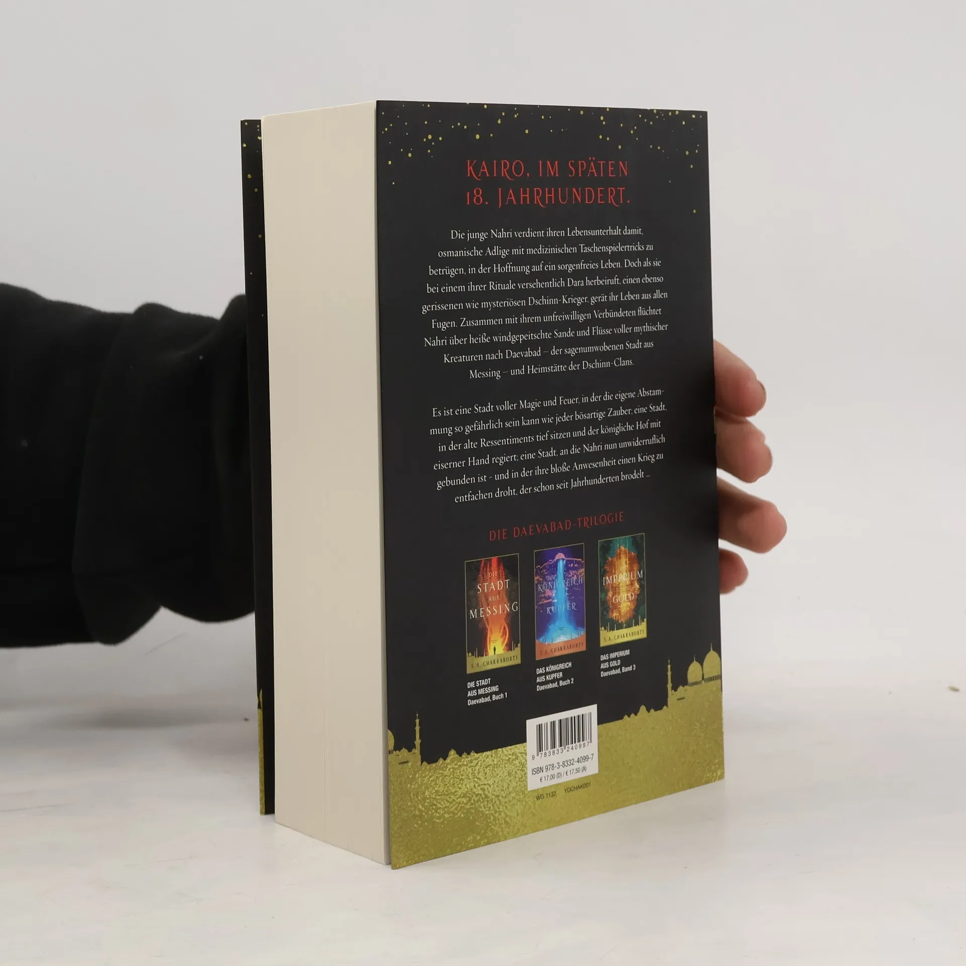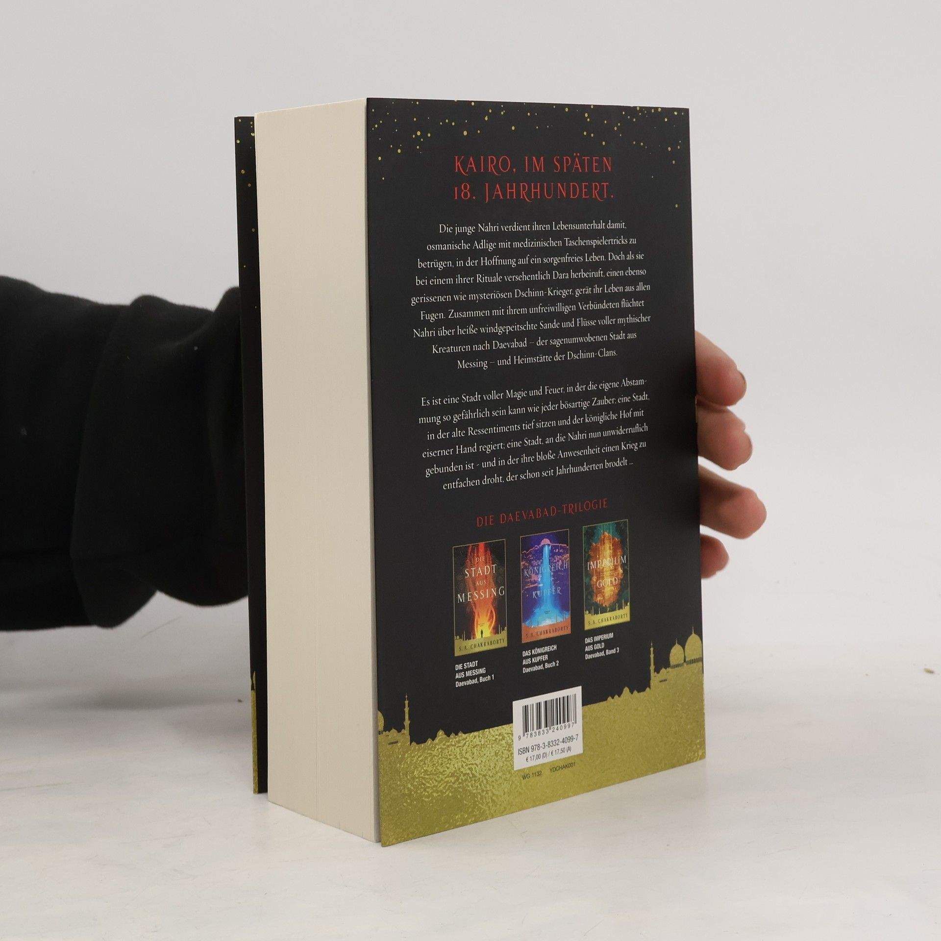 KAIRO, IM SPÄTEN 18. JAHRHUNDERT. Die junge Nahri verdient ihren Lebensunterhalt damit, osmanische Adlige mit medizinischen Taschenspielertricks zu betrügen, in der Hoffnung auf ein sorgenfreies Leben. Doch als sie bei einem ihrer Rituale versehentlich Dara herbeiruft, einen ebenso gerissenen wie mysteriösen Dschinn-Krieger, gerät ihr Leben aus allen Fugen. Zusammen mit ihrem unfreiwilligen Verbündeten flüchtet Nahri über heiße windgepeitschte Sande und Flüsse voller mythischer Kreaturen nach Daevabad – der sagenumwobenen Stadt aus Messing – und Heimstätte der Dschinn-Clans. Es ist eine Stadt voller Magie und Feuer, in der die eigene Abstammung so gefährlich sein kann wie jeder bösartige Zauber; eine Stadt, in der alte Ressentiments tief sitzen und der königliche Hof mit eiserner Hand regiert; eine Stadt, an die Nahri nun unwiderruflich gebunden ist - und in der ihre bloße Anwesenheit einen Krieg zu entfachen droht, der schon seit Jahrhunderten brodelt … Band 1 der Daevabad-Trilogie Die Daevabad-Trilogie im Überblick Band 1: Die Stadt aus Messing Band 2: Das Königreich aus Kupfer Band 3: Das Imperium aus Gold Erweiterung der Trilogie: Der Fluss aus Silber
