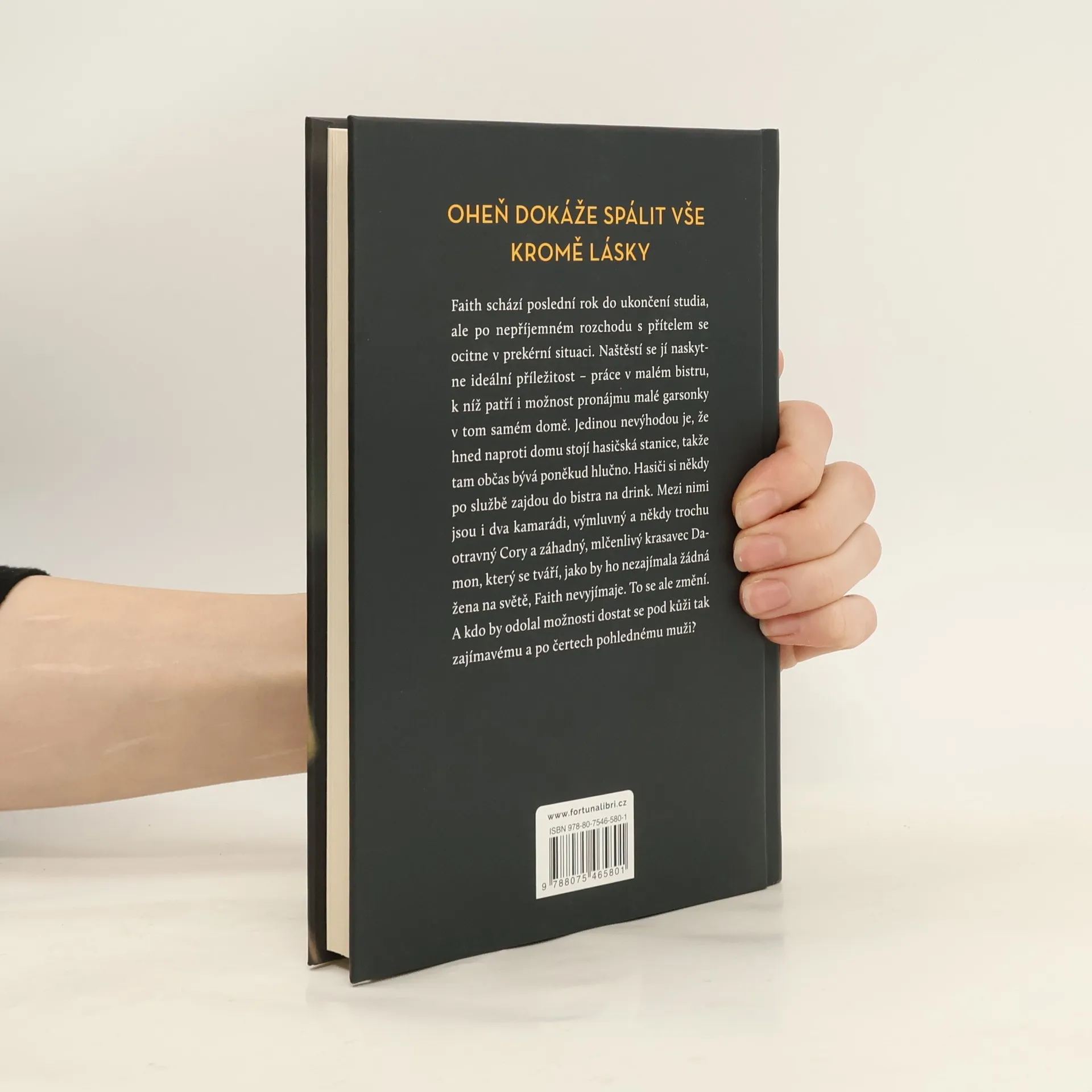 Oheň dokáže spálit vše, kromě lásky. Faith schází poslední rok do ukončení studia, ale po nepříjemném rozchodu s přítelem se ocitne v prekérní situaci. Naštěstí se jí naskytne ideální příležitost – práce v malém bistru, k níž patří i možnost pronájmu malé garsonky v tom samém domě. Jedinou nevýhodou je, že hned naproti domu stojí hasičská stanice, takže tam občas bývá poněkud hlučno. Hasiči si někdy po službě zajdou do bistra na drink. Mezi nimi jsou i dva kamarádi, výmluvný a někdy trochu otravný Cory a záhadný, mlčenlivý krasavec Damon, který se tváří, jako by ho nezajímala žádná žena na světě, Faith nevyjímaje. To se ale změní. A kdo by odolal možnosti dostat se pod kůži tak zajímavému a po čertech pohlednému muži?