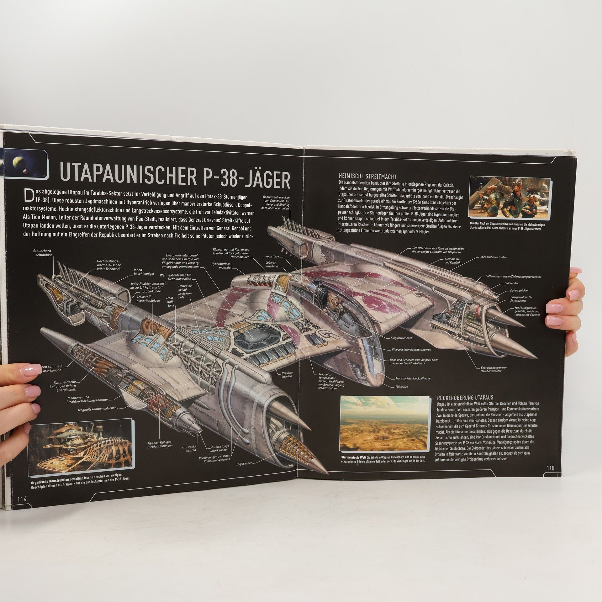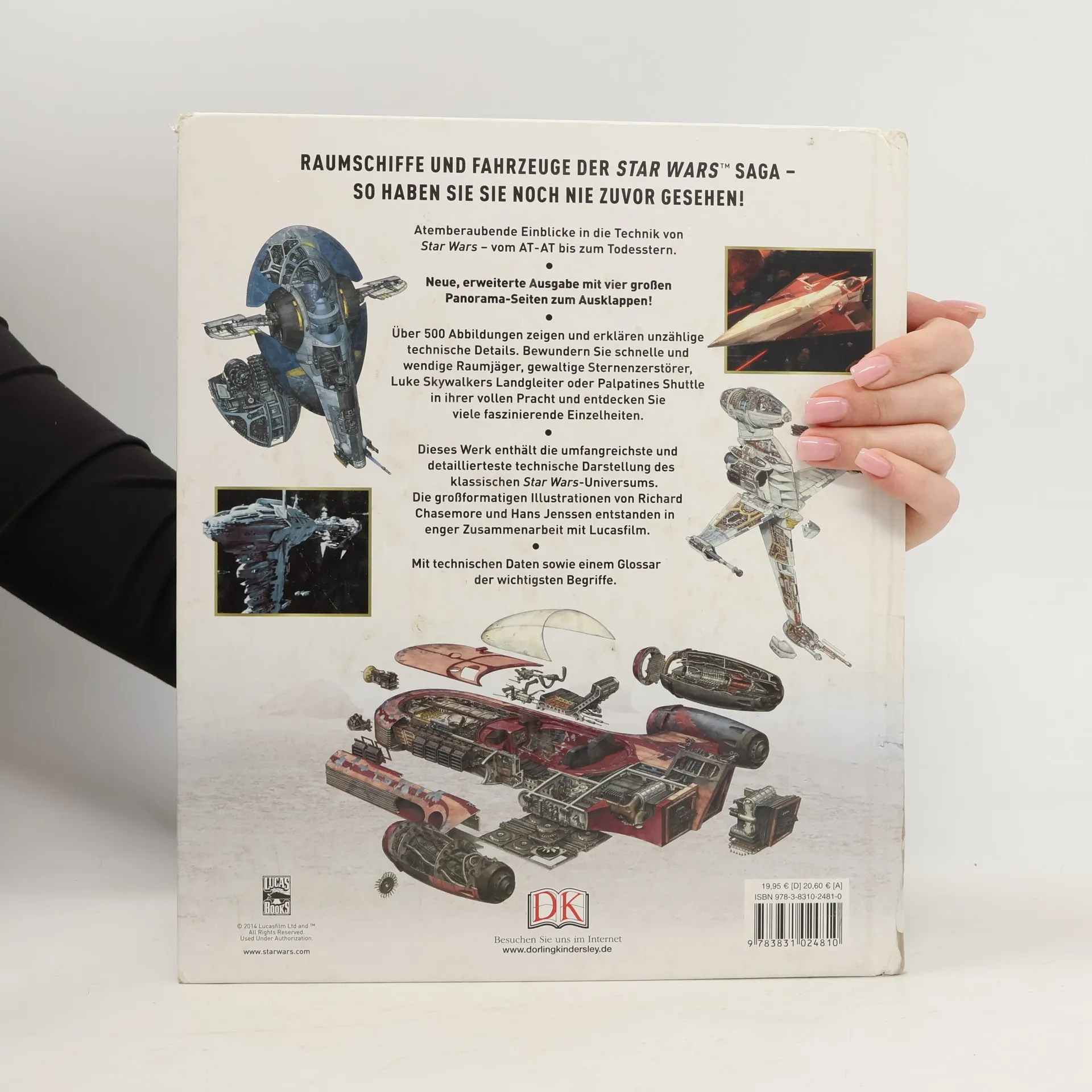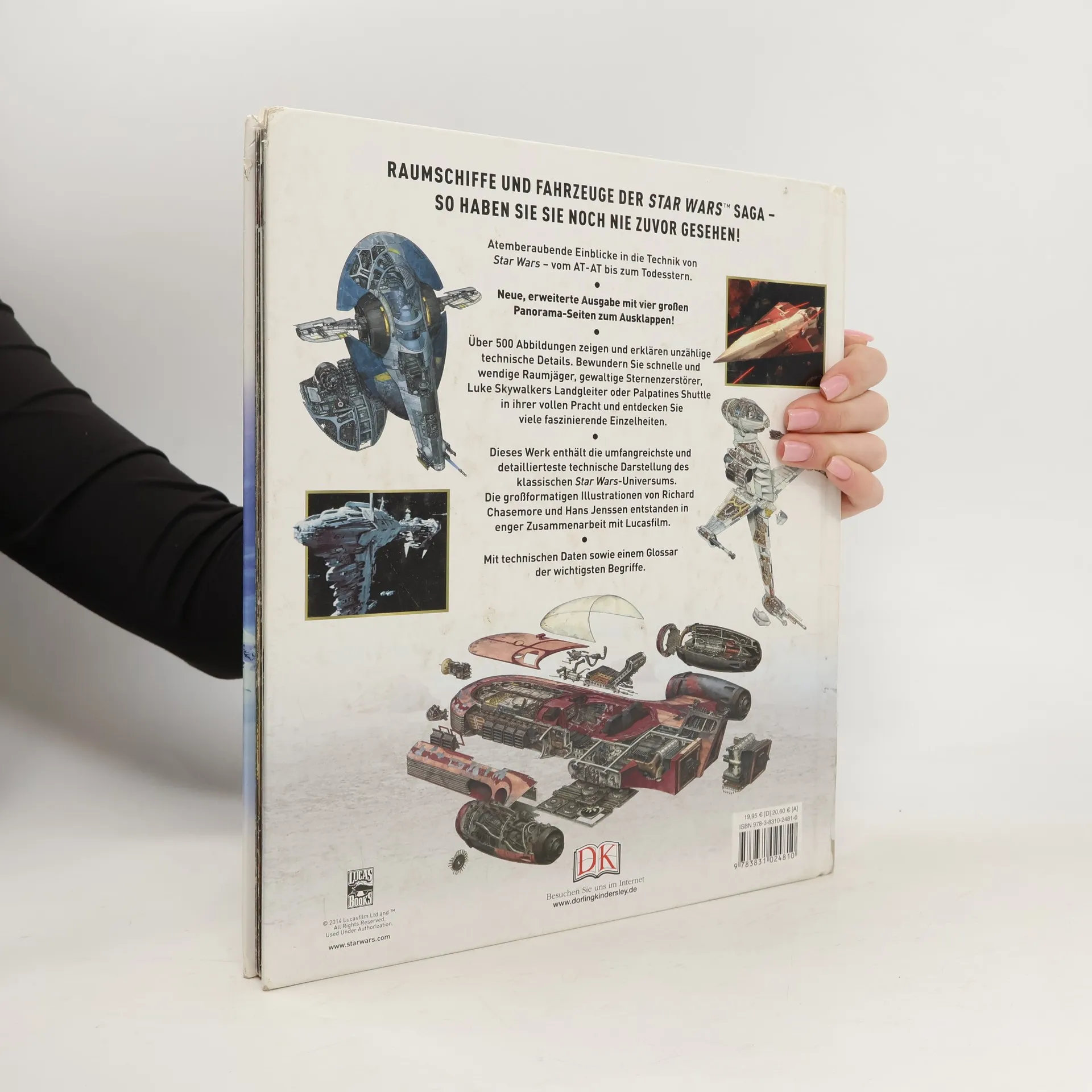 So hat man die Raumschiffe und Fahrzeuge der Star Wars(TM)-Saga noch nie zuvor gesehen! Mit diesem opulenten Band erleben Star Wars-Fans atemberaubende Einblicke in die Technik von Star Wars - vom AT-AT bis zum Todesstern, vom Podrenner bis zum Millennium Falken. Über 500 einzigartige, opulente Illustrationen der Raumschiffe und Fahrzeuge zeigen und erklären unzählige technische Details. Dieses Werk enthält die umfangreichste und detaillierteste technische Darstellung des klassischen Star Wars-Universums. Schnelle und wendige Raumjäger, gewaltige Sternenzerstörer, robuste Bodenfahrzeuge, Luke Skywalkers Landgleiter oder Palpatines Shuttle können hier in ihrer vollen Pracht bewundert werden. Die großformatigen Illustrationen von Richard Chasemore und Hans Jenssen entstanden in enger Zusammenarbeit mit dem Lucasfilm Art Department. Beim Betrachten wird man immer wieder faszinierende neue Einzelheiten entdecken. Besonders spektakulär sind die vier großformatigen Panoramaseiten zum Ausklappen, die mit ihrer unglaublichen Detailtreue beeindrucken. Technische Daten aller Raumschiffe und Fahrzeuge und ein Glossar der wichtigsten Begriffe ergänzen dieses Kompendium. Ein perfektes Geschenk für alle kleinen und großen Star Wars-Fans! Ab 8 Jahren
