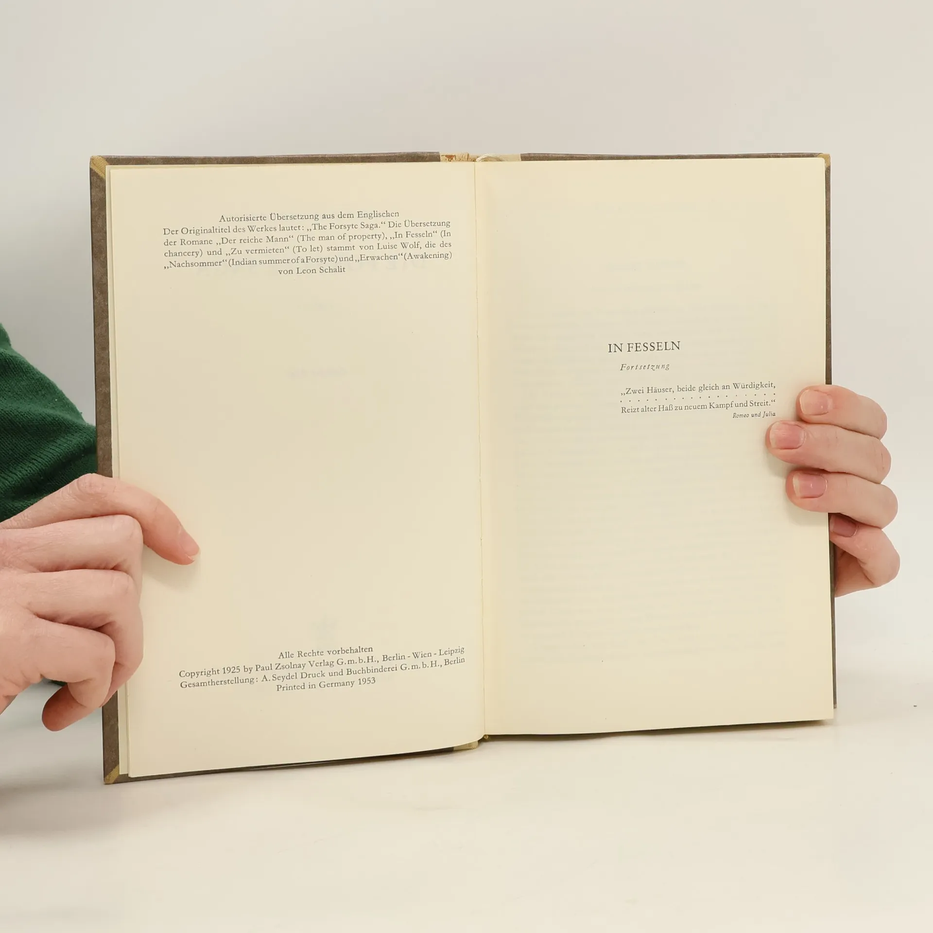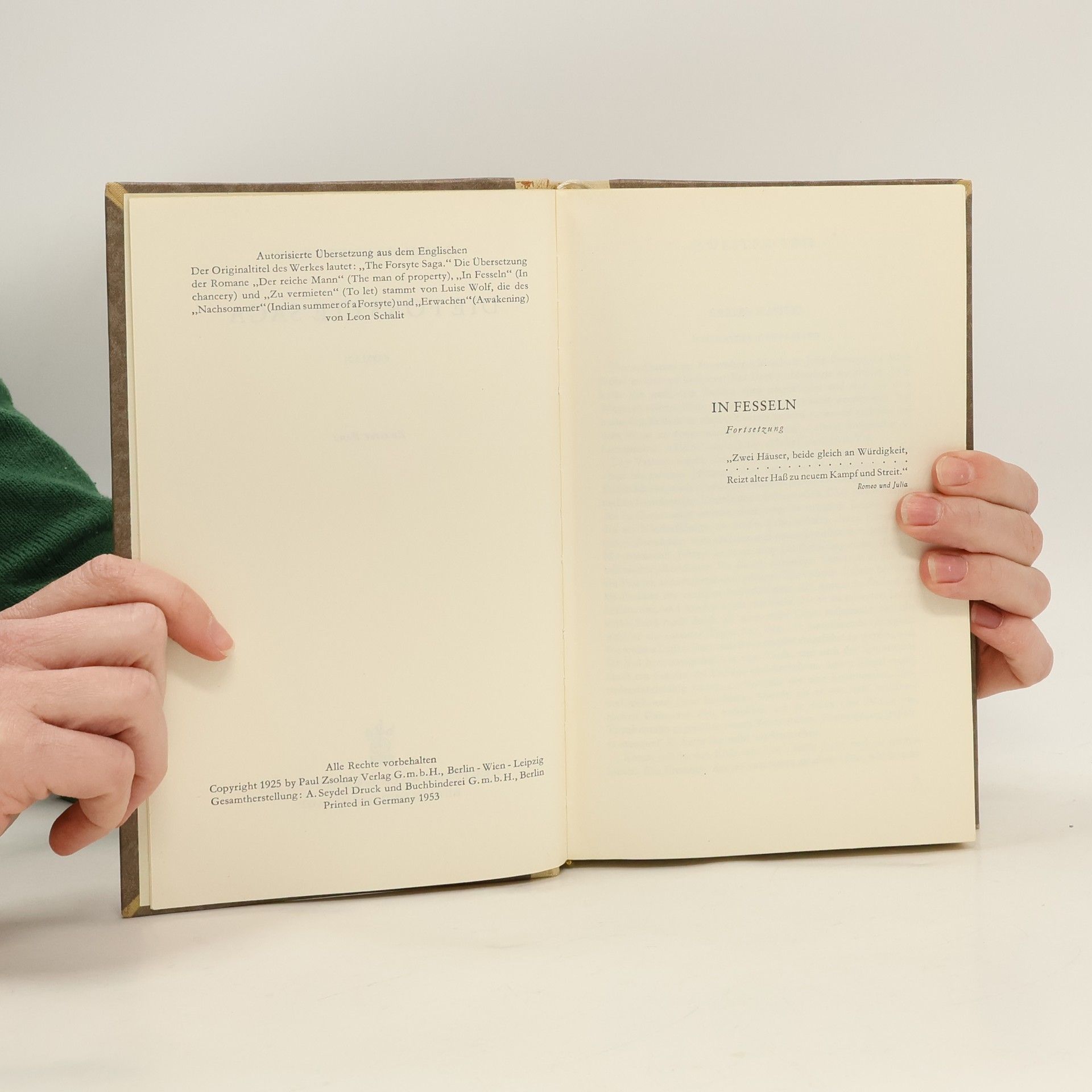 Skladem máme celkem 2ks knihy Die Forsyte Saga. Zweiter Band (1953).