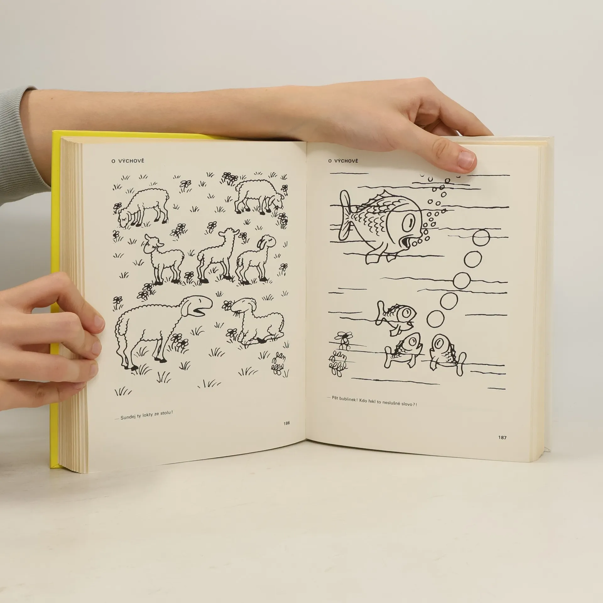 Rozmarné kresby s vtipným doprovodem vytvářejí moderní bajku 20. století.