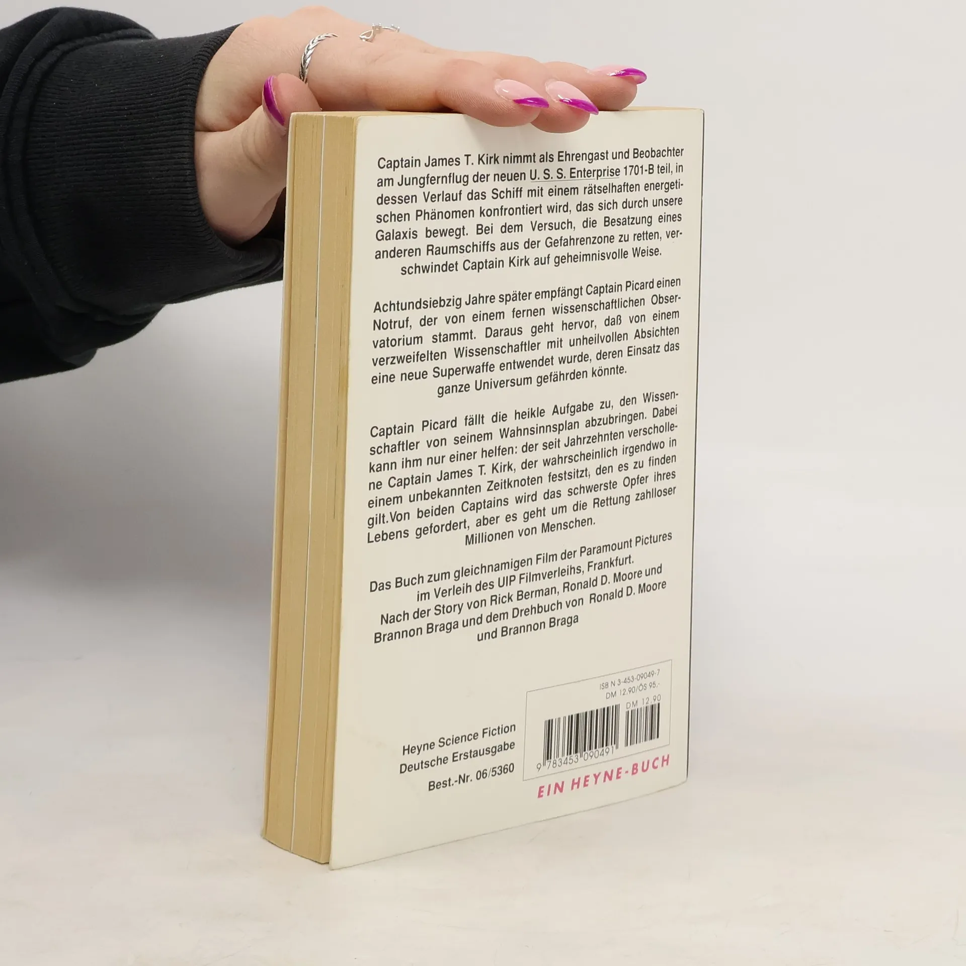 Captain James T. Kirk nimmt als Ehrengast und Beobachter am Jungfernflug der neuen U.S.S. Enterprise 1701-B teil, in dessen Verlauf das Schiff mit einem rätselhaften energetischen Phänomen konfrontiert wird, das sich durch unsere Galaxis bewegt. Bei dem Versuch, die Besatzung eines anderen Raumschiffs aus der Gefahrenzone zu retten, verschwindet Captain Kirk auf geheimnisvolle Weise. . Achtundsiebzig Jahre später empfängt Captain Picard einen Notruf, der von einem fernen wissenschaftlichen Observatorium stammt. Daraus geht hervor, daß von einem verzweifelten Wissenschaftler mit unheilvollen Absichten eine neue Superwaffe entwendet wurde, deren Einsatz das ganze Universum gefährden könnte. . Captain Picard fällt die heikle Aufgabe zu, den Wissenschaftler von seinem Wahnsinnsplan abzubringen. Dabei kann ihm nur einer helfen: der seit Jahrzehnten verschollene Captain James T. Kirk, der wahrscheinlich irgendwo in einem unbekannten Zeitknoten festsitzt, den es zu finden gilt. Von beiden Captains wird das schwerste Opfer ihres Lebens gefordert, aber es geht um die Rettung zahlloser Millionen von Menschen. . Das Buch zum gleichnamigen Film der Paramount Pictures im Verleih des UIP Filmverleihs, Frankfurt. Nach der Story von Rick Berman, Ronald D. Moore und Brannon Braga und dem Drehbuch von Ronald D. Moore und Brannon Braga.