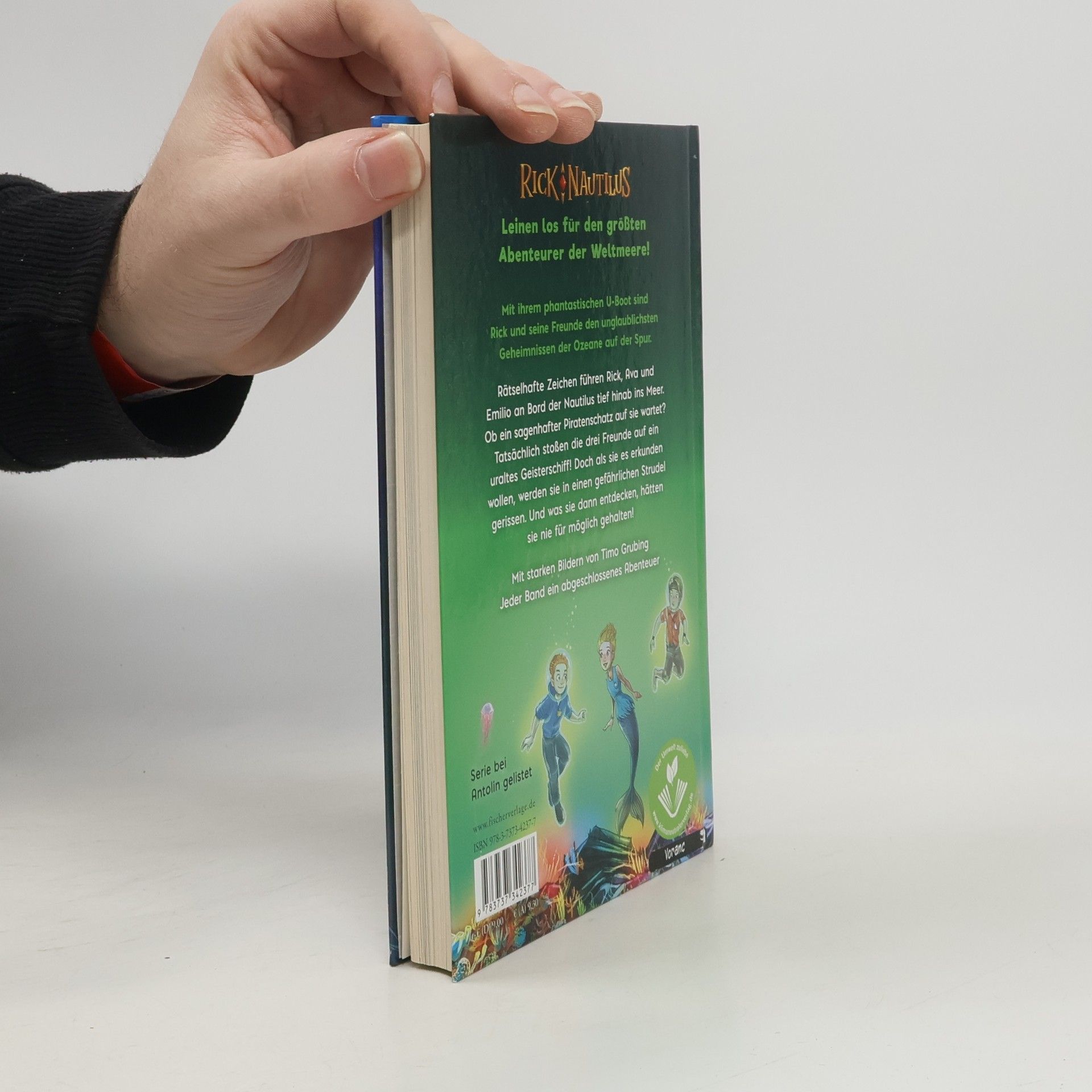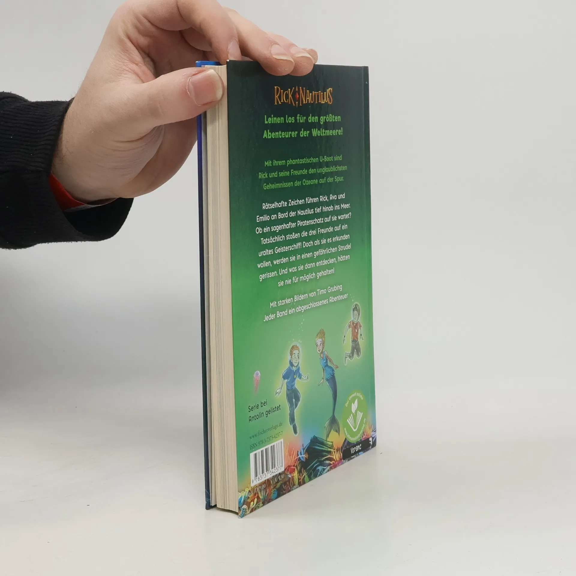 Leinen los! Rick Nautilus ist der jüngste und coolste Abenteurer der Weltmeere – Band 4 der spannenden Serie vom Bestsellerautor von »Die ??? Kids« Rätselhafte Zeichen führen Ava, Rick und Emilio an Bord der Nautilus tief hinab ins Meer. Ob ein sagenhafter Piratenschatz auf sie wartet? Tatsächlich stoßen die drei Freunde auf ein uraltes Geisterschiff! Doch als sie es erkunden wollen, werden sie in einen gefährlichen Strudel gerissen. Und was sie dann entdecken, hätten sie nie für möglich gehalten! Mit ihrem phantastischen U-Boot sind Rick und seine Freunde, die Ozeanerin Ava und der Piratensohn Emilio, den unglaublichsten Geheimnissen der Ozeane auf der Spur. Lesespaß in Serie für alle Abenteurer, Wasserratten und Leichtmatrosen! Mit starken Bildern von Timo Grubing Bereits erschienen in der Serie »Rick Nautilus«: Rick Nautilus – SOS aus der Tiefe (Band 1) Rick Nautilus – Gefangen auf der Eiseninsel (Band 2) In Kürze erscheinen: Rick Nautilus – Alarm in der Delfin-Lagune (Band 3) Rick Nautilus – Geisterschiff am Meeresgrund (Band 4) Weitere Bände in Vorbereitung