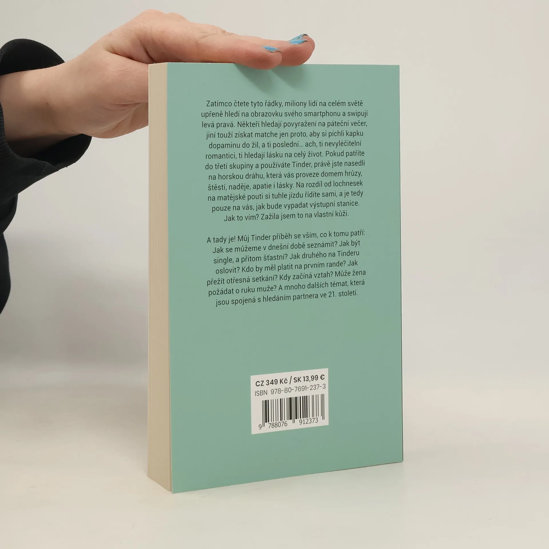 Úsměvné historky z Tinderu i hlubší zamyšlení nad moderním způsobem seznamování a vztahy samotnými. Patříte mezi nevyléčitelné romantiky, kteří hledají lásku na celý život, a používáte Tinder? Právě jste nasedli na horskou dráhu, která vás proveze domem hrůzy, štěstí, naděje, apatie i lásky. Autorka to zažila na vlastní kůži a tohle je její Tinder příběh se vším, co k tomu patří: Jak se můžeme v dnešní době seznámit? Jak druhého na Tinderu oslovit? Jak přežít otřesná setkání? Kdy začíná vztah? Může žena požádat o ruku muže? A další témata spojená s hledáním partnera ve 21. století.