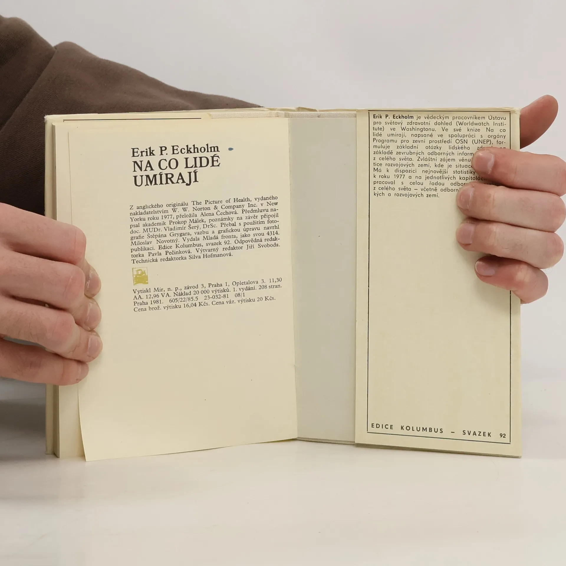 Erik P. Eckholm: Na co lidé umírají - zdroje chorob v zevním prostředí. Kniha napsaná ve spolupráci s orgány programu pro zevní prostředí OSN (UNEF) uvádí základní otázky lidského zdraví na základě zevrubných odborných informací a údajů z celého světa. Zvláštní zájem věnuje problematice rozvojových zemí, kde je situace nejtíživější. Má k dispozici statistiky z roku 1977 a na jednotlivých kapitolách spolupracoval autor s celou řadou odborníků prakticky z celého světa.