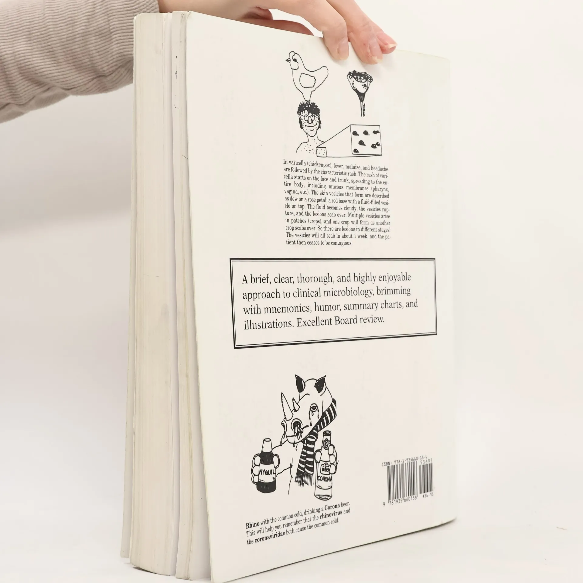A brief, clear, thorough, and highly enjoyable approach to clinical microbiology, brimming with mnemonics, humor, summary charts and illustrations, from AIDS to flesh-eating bacteria to ebola, mad cow disease, hantavirus, anthrax, smallpox, botulism, etc. Significant updates. Excellent Board review.