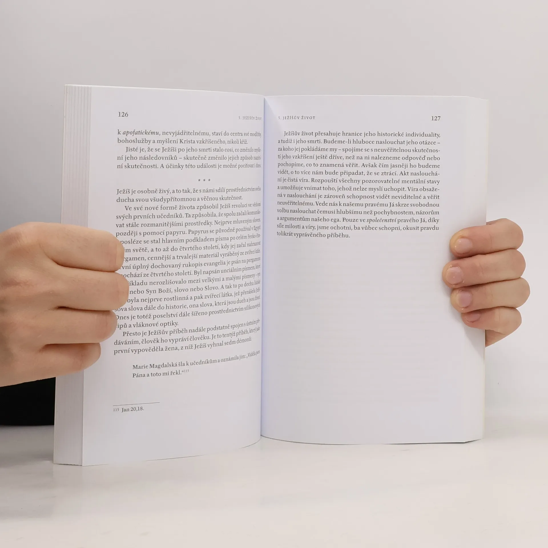 Kdo je Ježíš? Tato prostá, nadčasová otázka zní napříč staletími. Také odpověď na ni je prostá, leč nikoli snadná. Pokud se rozhodneme této Ježíšově otázce naslouchat a odpovědět na ni, změní náš způsob života, myšlení a cítění. Vede nás totiž k poznání sebe sama, které nás promění. Na takovou otázku můžeme odpovědět jedině tenkrát, když se my sami staneme dostatečně prostými díky dlouhému a hlubokému naslouchání. Ježíš hraje nepostradatelnou úlohu na cestě k jakékoli autentické spiritualitě. Přestože mnoho lidí má nějaký problém s církví – včetně většiny věřících – osoba Ježíše je jedním ze stabilních majáků vedoucích lidstvo ze zmatku sobectví, zoufalství a násilí k vyšším cílům, jež si před sebe neustále klade, totiž k laskavosti a klidu ducha.