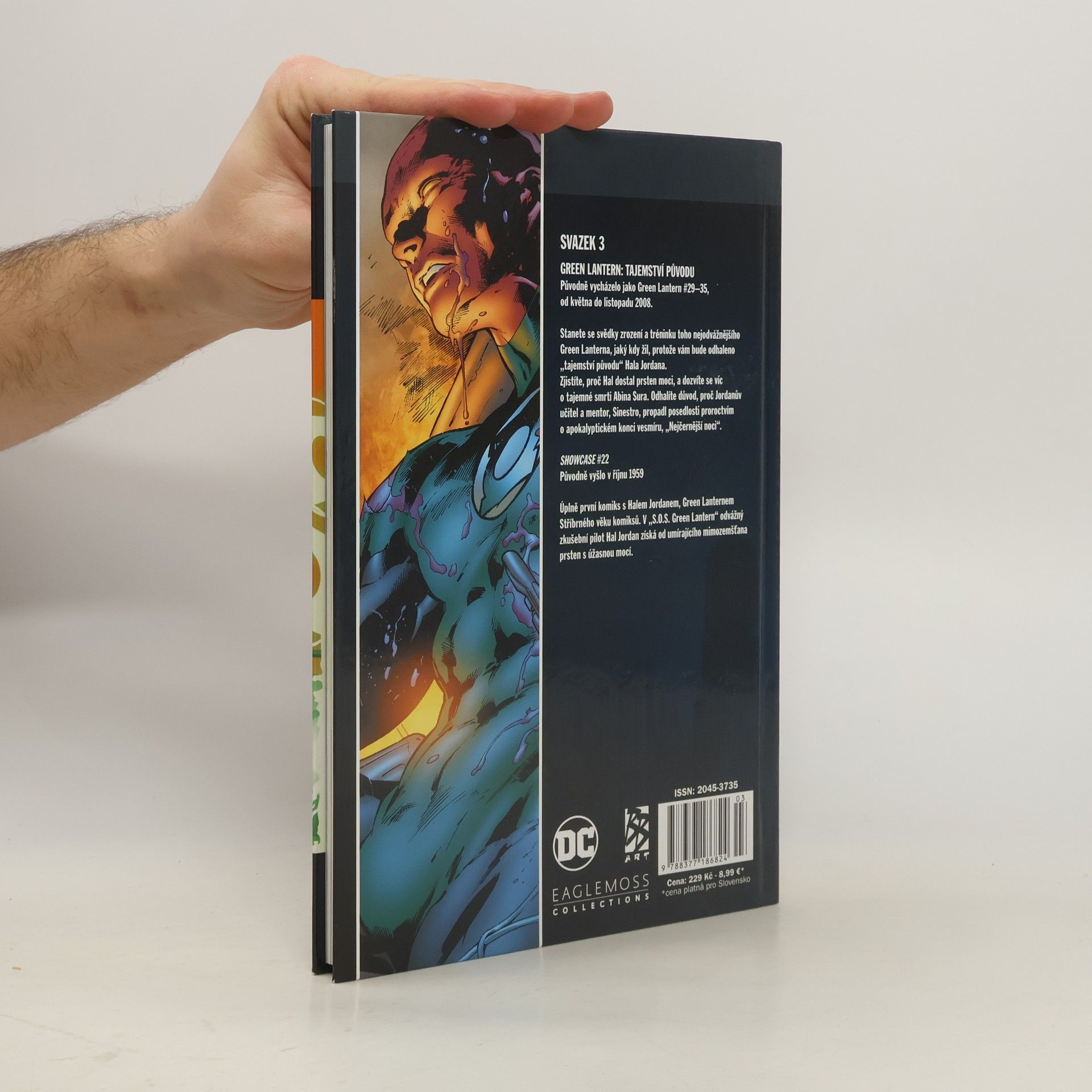 Green Lantern: Tajemství původu (Původně vycházelo od května do listopadu 2008) Stanete se svědky zrození a tréninku toho nejodvážnějšího Green Lanterna, jaký kdy žil, protože vám bude odhaleno "tajemství původu" Hala Jordana. Zjistíte, proč Hal dostal prsten moci, a dozvíte se víc o tajemné smrti Abina Sura. Odhalíte důvod, proč Jordanův učitel a mentor, Sinestro, propadl posedlosti proroctvím o apokalyptickém konci vesmíru, "Nejčernější noci". Showcase #22 (Původně vyšlo v říjnu 1959) Úplně první komiks s Halem Jordanem, Green Lanternem Stříbrného věku komiksů. V "S.O.S. Green Lantern" odvážný zkušební pilot Hal Jordan získ od umírajícího mimozemšťana prsten s úžasnou mocí. Obsahuje sešity sérií Green Lantern #29-35 a Showcase #22