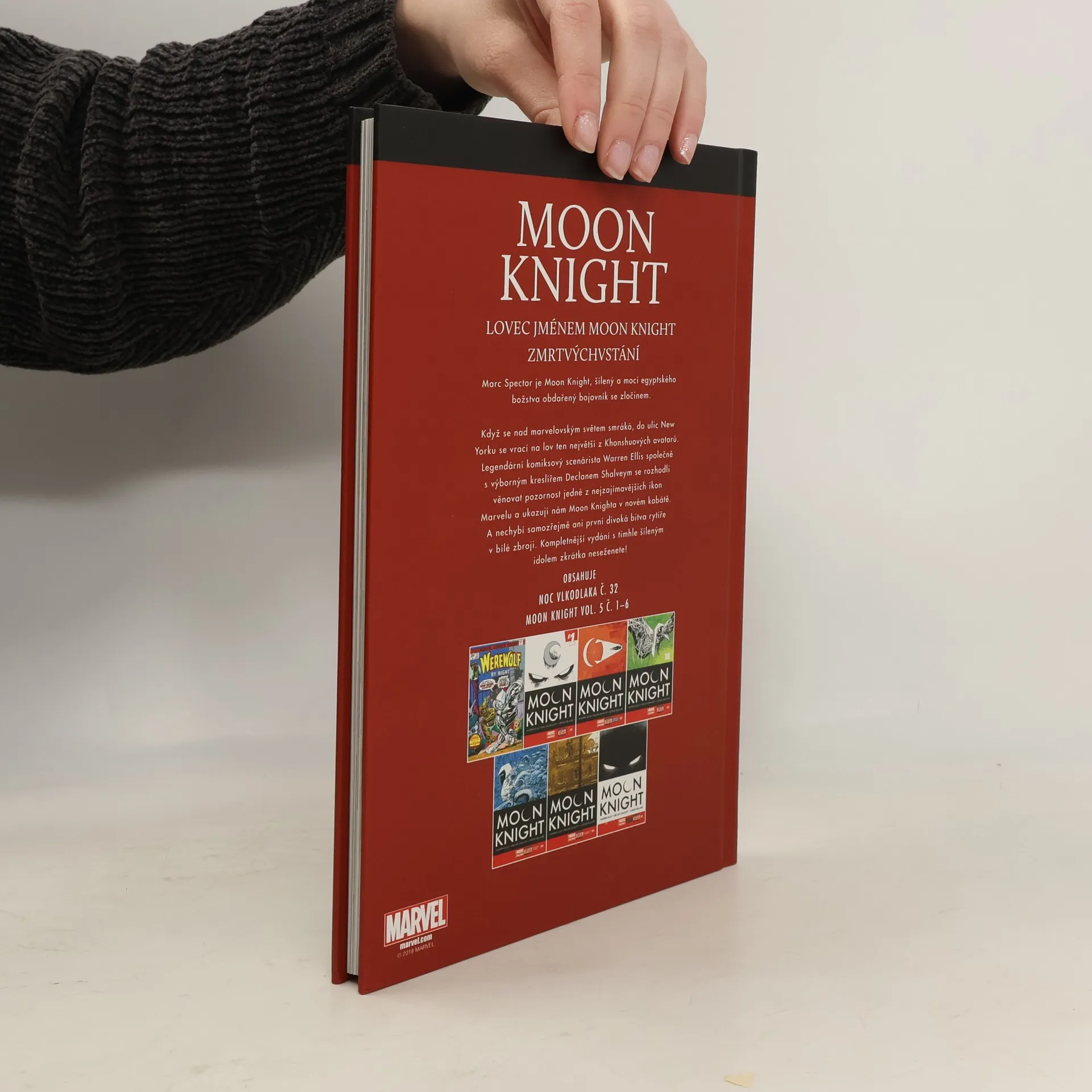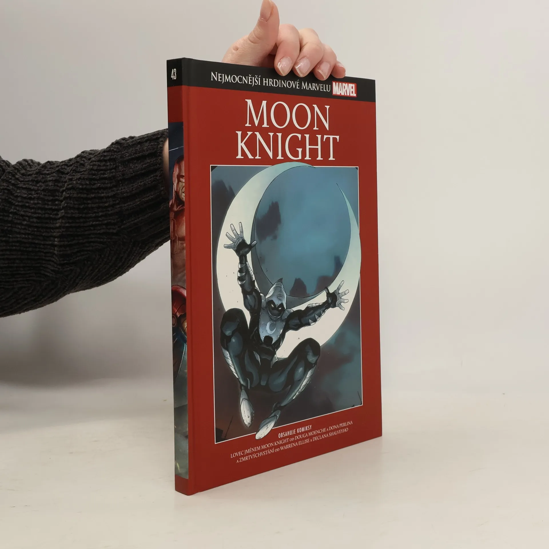 Marc Spector je Moon Knight, šílený a mocí egyptského božstva obdařený bojovník se zločinem. Legendární komiksový scénárista Warren Ellis společně s výborným kreslířem Declanem Shalveym se rozhodli věnovat pozornost jedné z nejzajímavějších ikon Marvelu a ukazují nám Moon Knighta v novém kabátě. A nechybí samozřejmě ani první divoká bitva rytíře v bílé zbroji. Kompletnější vydání s tímhle šíleným idolem zkrátka neseženete! Obsahuje: Lovec jménem Moon Knight Zmrtvýchvstání