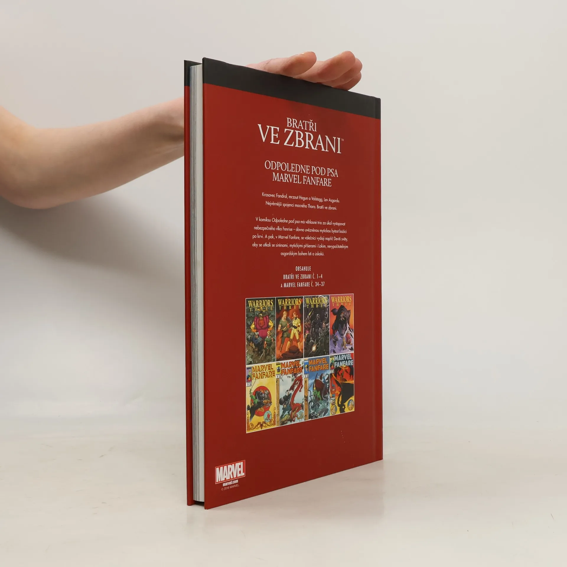 Krasavec Fandral, mrzout Hogun a Volstagg, Lev Asgardu. Nejvěrnější spojenci mocného Thora. Bratři ve zbrani. V komiksu Odpoledne pod psa má věhlasné trio za úkol vystopovat nebezpečného vlka Fenrise - dávno uvězněnou mýtickou bytost bažící po krvi. A pak, v Marvel Fanfare, se válečníci vydají napříč Devíti světy, aby se utkali se sirénami, mýtiskými příšerami i Lokim, nevypočítatelným asgardským bohem lstí a úskoků.