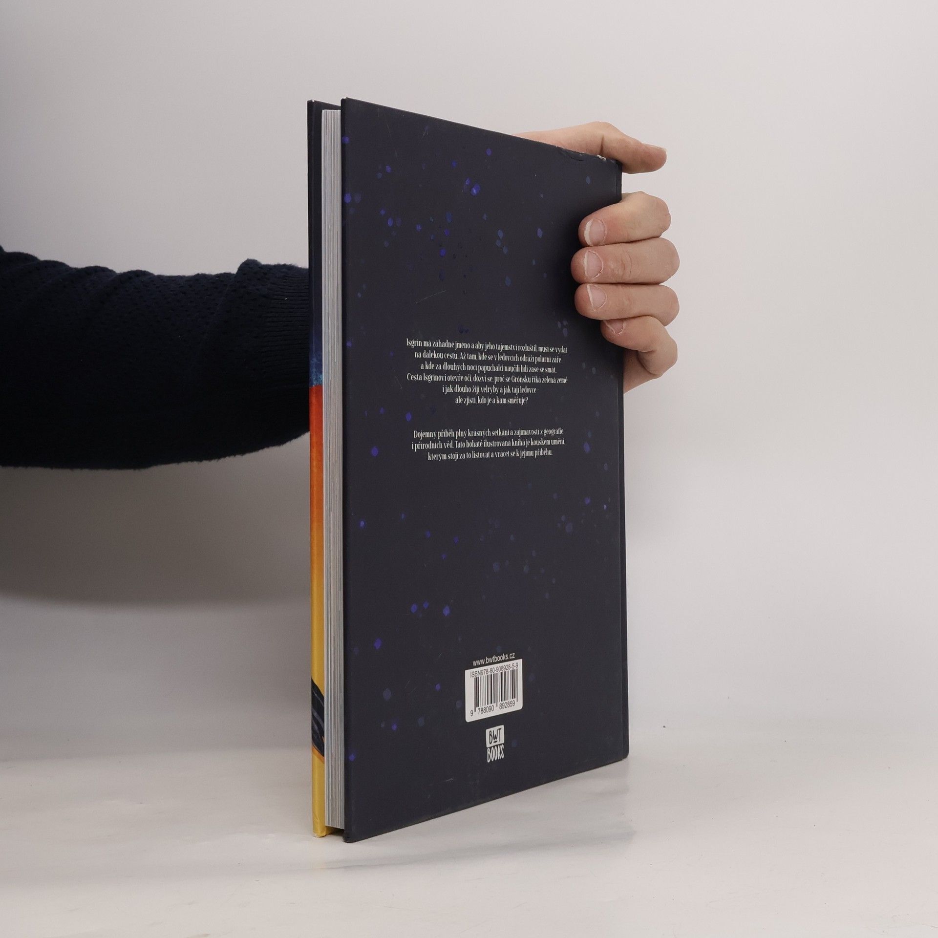 Isgrín má záhadné jméno a aby jeho tajemství rozluštil, musí se vydat na dalekou cestu. Až tam, kde se v ledovcích odráží polární záře a kde za dlouhých nocí papuchalci naučili lidi zase se smát. Cesta Isgrínovi otevře oči, dozví se, proč se Grónsku říká zelená země i jak dlouho žijí velryby a jak tají ledovce - ale zjistí, kdo je a kam směřuje? Dojemný příběh plný krásných setkání a zajímavostí z geografie i přírodních věd. Tato bohatě ilustrovaná kniha je kouskem umění, kterým stojí za to listovat a vracet se k jejímu příběhu.