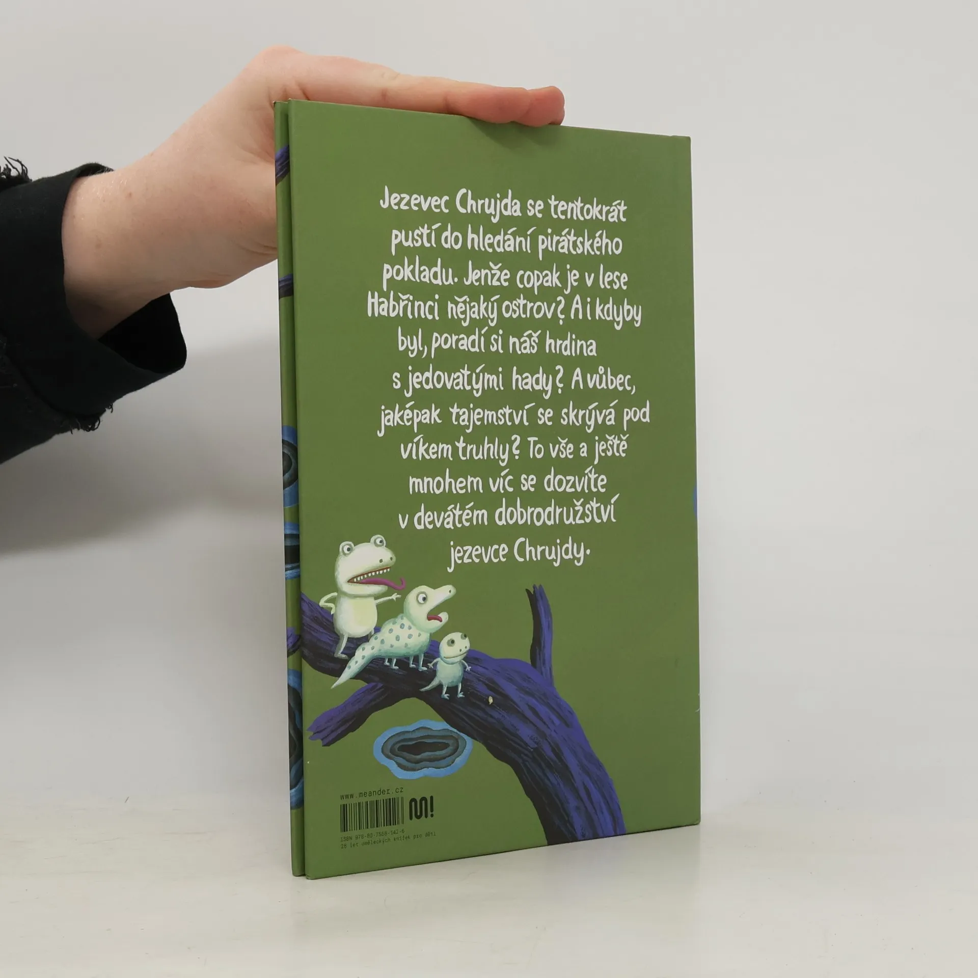 Jezevec Chrujda se tentokrát pustí do hledání pirátského pokladu. Jenže copak je v lese Habřinci nějaký ostrov? A i kdyby byl, poradí si náš hrdina s jedovatými hady? A vůbec, jaképak tajemství se skrývá pod víkem truhly? Nakladatelská anotace. Kráceno.