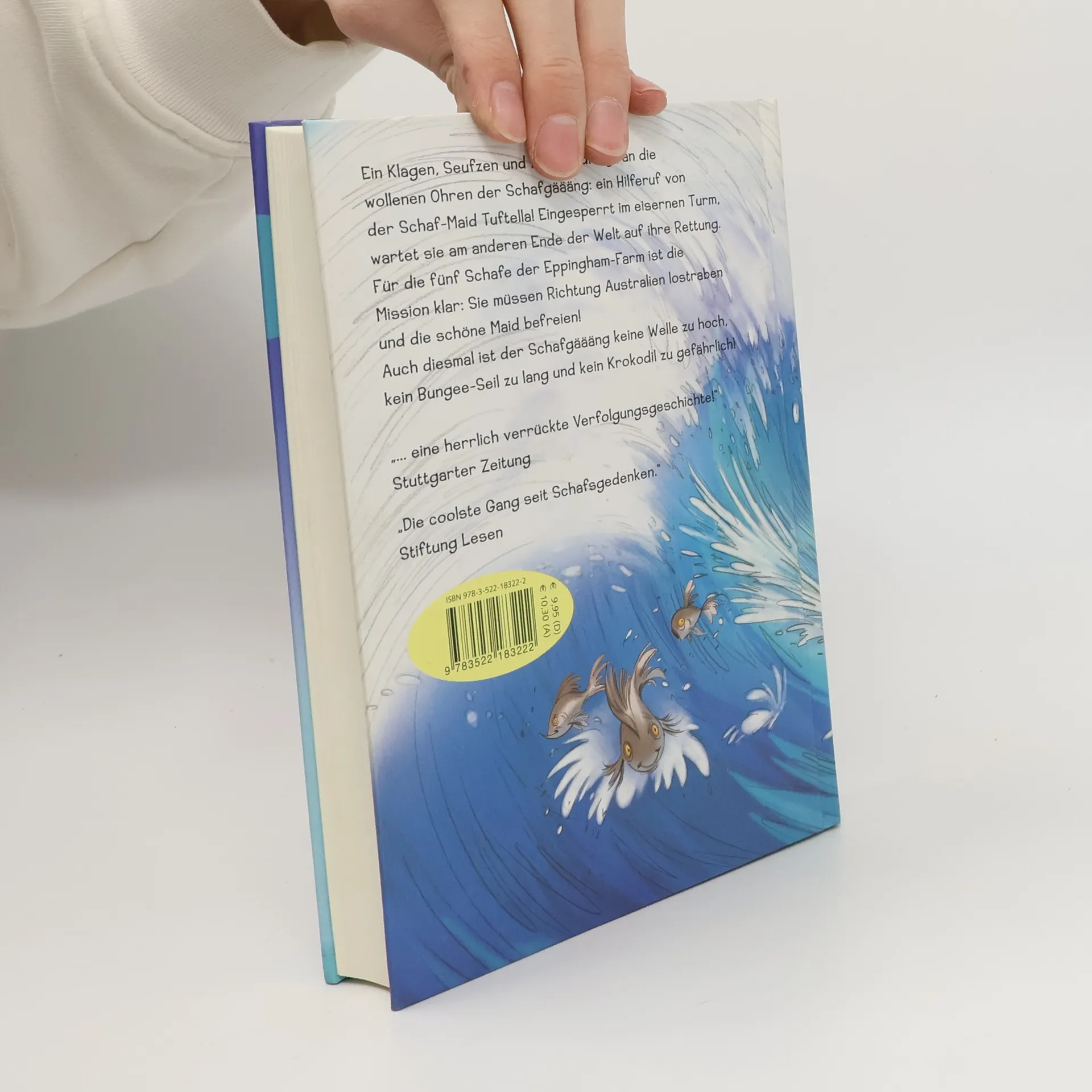 Ein Klagen, Seufzen und Pochen dringt an die wollenen Ohren der Schafgäääng: ein Hilferuf von der Schaf-Maid Tuftella! Eingesperrt im eisernen Turm, wartet sie am anderen Ende der Welt auf ihre Rettung. Für die fünf Schafe der Eppingham-Farm ist die Mission klar: Sie müssen Richtung Australien lostraben und die schöne Maid befreien! Auch diesmal ist der Schafgäääng keine Welle zu hoch, kein Bungee-Seil zu lang und kein Krokodil zu gefährlich! „ ... eine herrlich verrückte Verfolgungsgeschichte!“ Stuttgarter Zeitung „Die coolste Gang seit Schafsgedenken.“ Stiftung Lesen