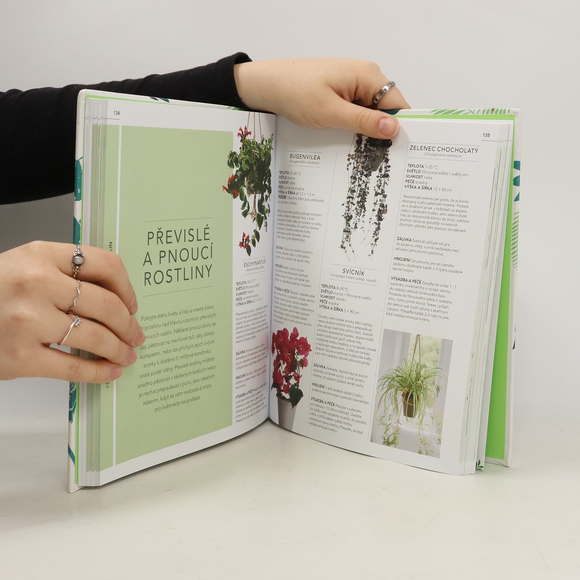 Nejnovější studie potvrzují, že rostliny jsou nejen krásné na pohled, ale dokážou i čistit vzduch, rozjasnit naši náladu a snižovat míru stresu. Tato obsažná publikace nabízí široký výběr osvědčených i netradičních druhů a rovněž ukázky interiérových návrhů, které oživí vaši domácnost. Pro každou místnost se najde ta správná kombinace, která potěší oko, dodá prostoru na originalitě a péče vám nezabere příliš času. Vyberte si z jednotlivých profilů – ať už jsou to rostliny ozdobné listem, květiny rozmanitých tvarů a barev, elegantní orchideje, roztomilé drobné kaktusy a sukulenty, formy s jemnými převislými stonky, nebo vysoké palmy – z nabídky 175 pokojových rostlin si vybere každý. U všech druhů je uvedena vhodná teplota, světlo, vlhkost, výška a šířka a nároky na péči.