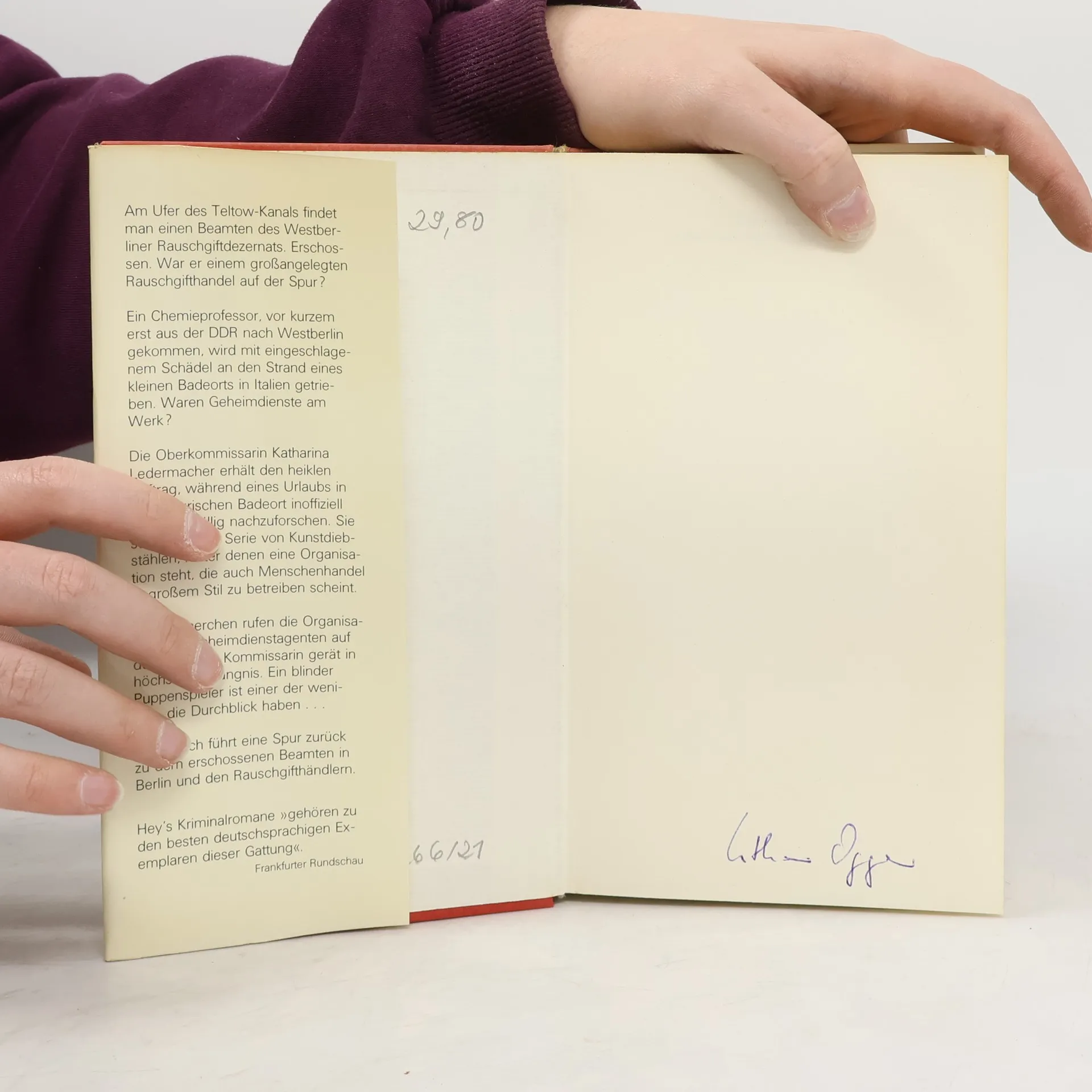 Am Ufer des Teltow-Kanals findet man einen Beamten des West-Berliner Rauschgiftdezernats. Erschossen. Ein Chemieprofessor, vor kurzem erst aus der DDR nach West-Berlin gekommen, wird mit eingeschlagenem Schädel an den Strand eines kleinen Badeortes in Italien getrieben. Oberkommissarin Katharina Ledermacher erhält den heiklen Auftrag, während eines Urlaubs in dem ligurischen Badeort inoffiziell und unauffällig nachzuforschen. Sie gerät in höchste Bedrängnis. Ein blinder Puppenspieler ist einer der wenigen, die Durchblick haben.