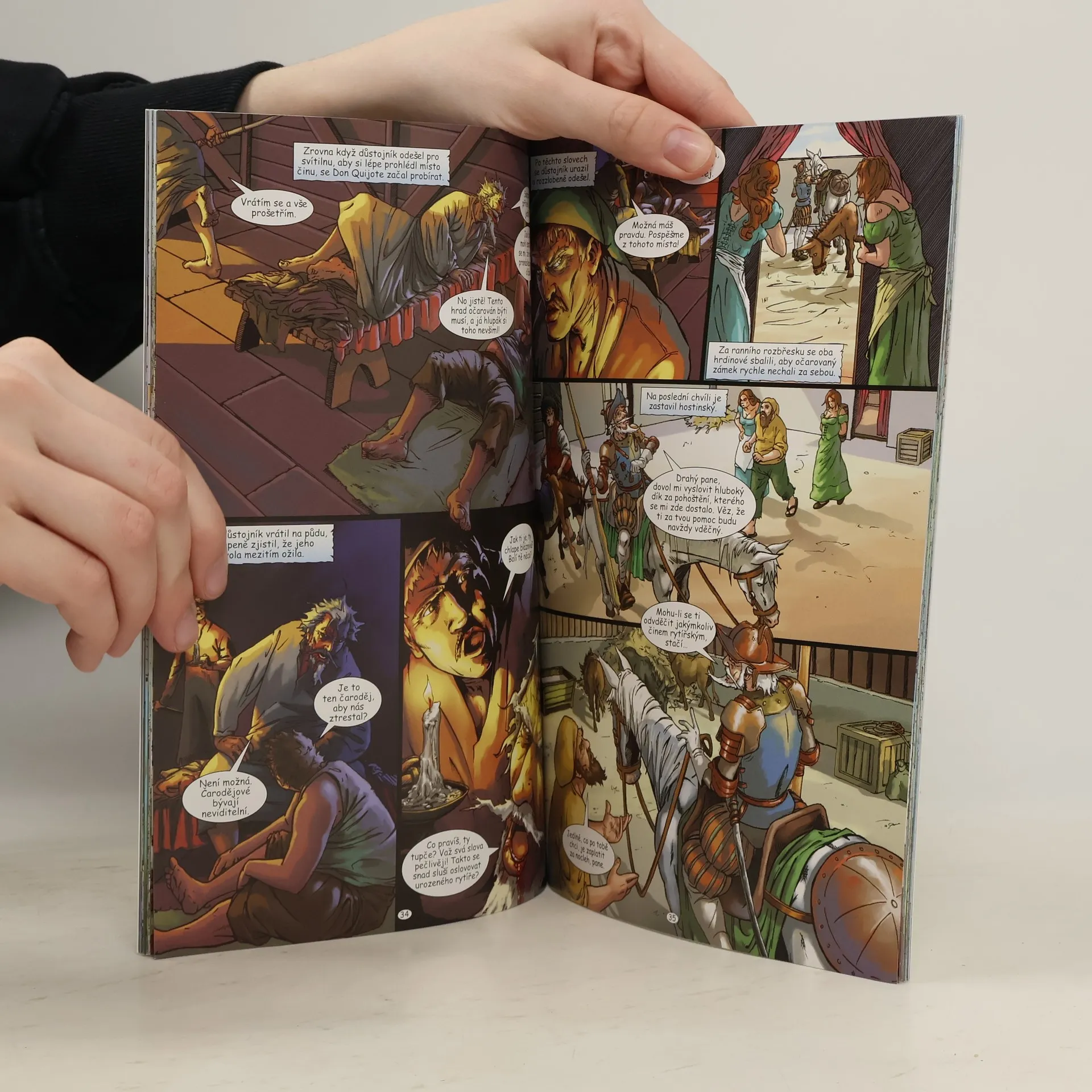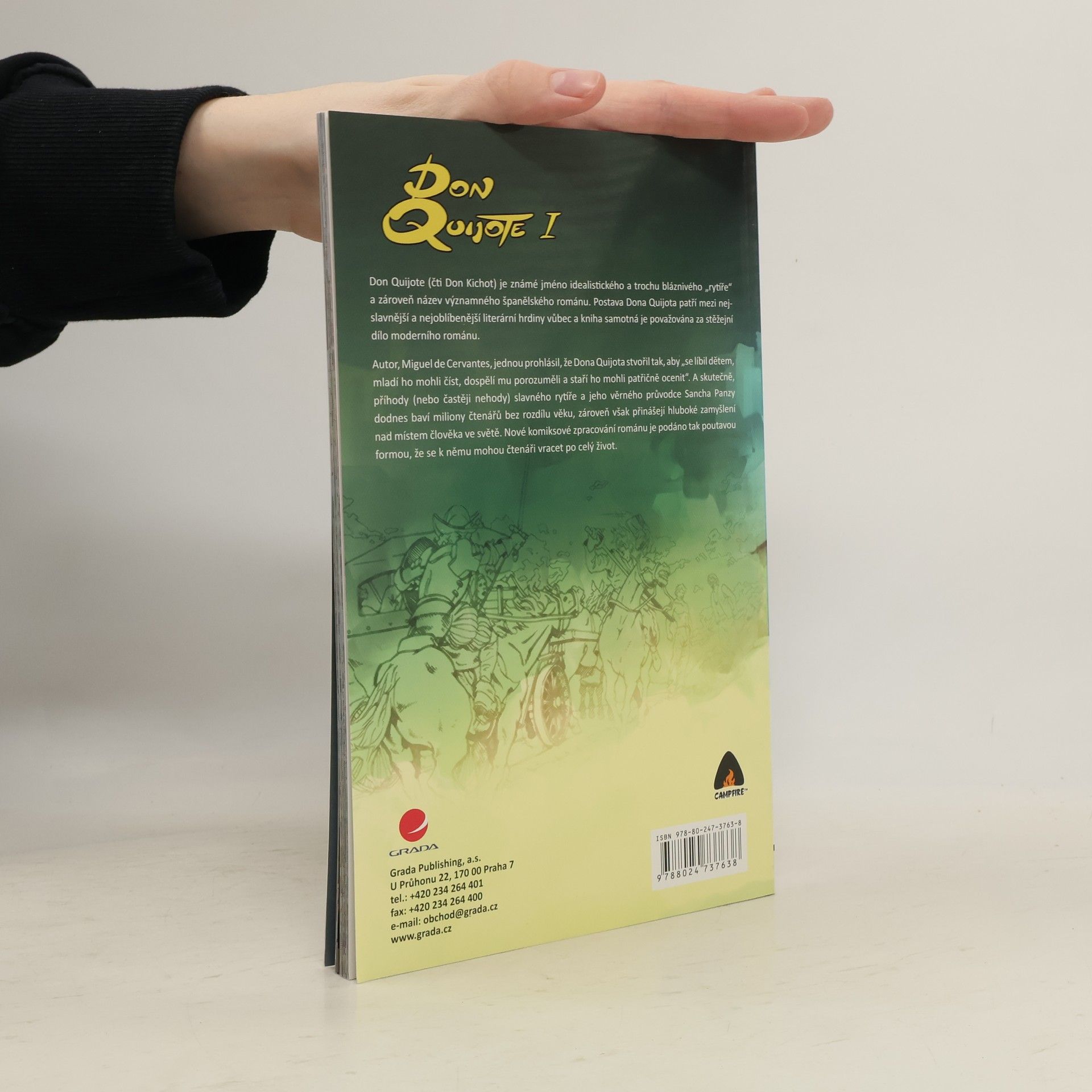 Don Quijote (čti Don Kichot) je známé jméno idealistického a trochu bláznivého "rytíře" a zároveň název významného španělského románu. Postava Dona Quijota patří mezi nejslavnější a nejoblíbenější literární hrdiny vůbec a kniha samotná je považována za stěžejní dílo moderního románu. Autor, Miguel de Cervantes, jednou prohlásil, že Dona Quijota stvořil tak, aby "se líbil dětem, mladí ho mohli číst, dospělí mu porozuměli a staří ho mohli patřičně ocenit". A skutečně, příhody (nebo častěji nehody) slavného rytíře a jeho věrného průvodce Sancha Panzy dodnes baví miliony čtenářů bez rozdílu věku, zároveň však přinášejí hluboké zamyšlení nad místem člověka ve světě. Nové komiksové zpracování románu je podáno tak poutavou formou, že se k němu mohou čtenáři vracet po celý život.