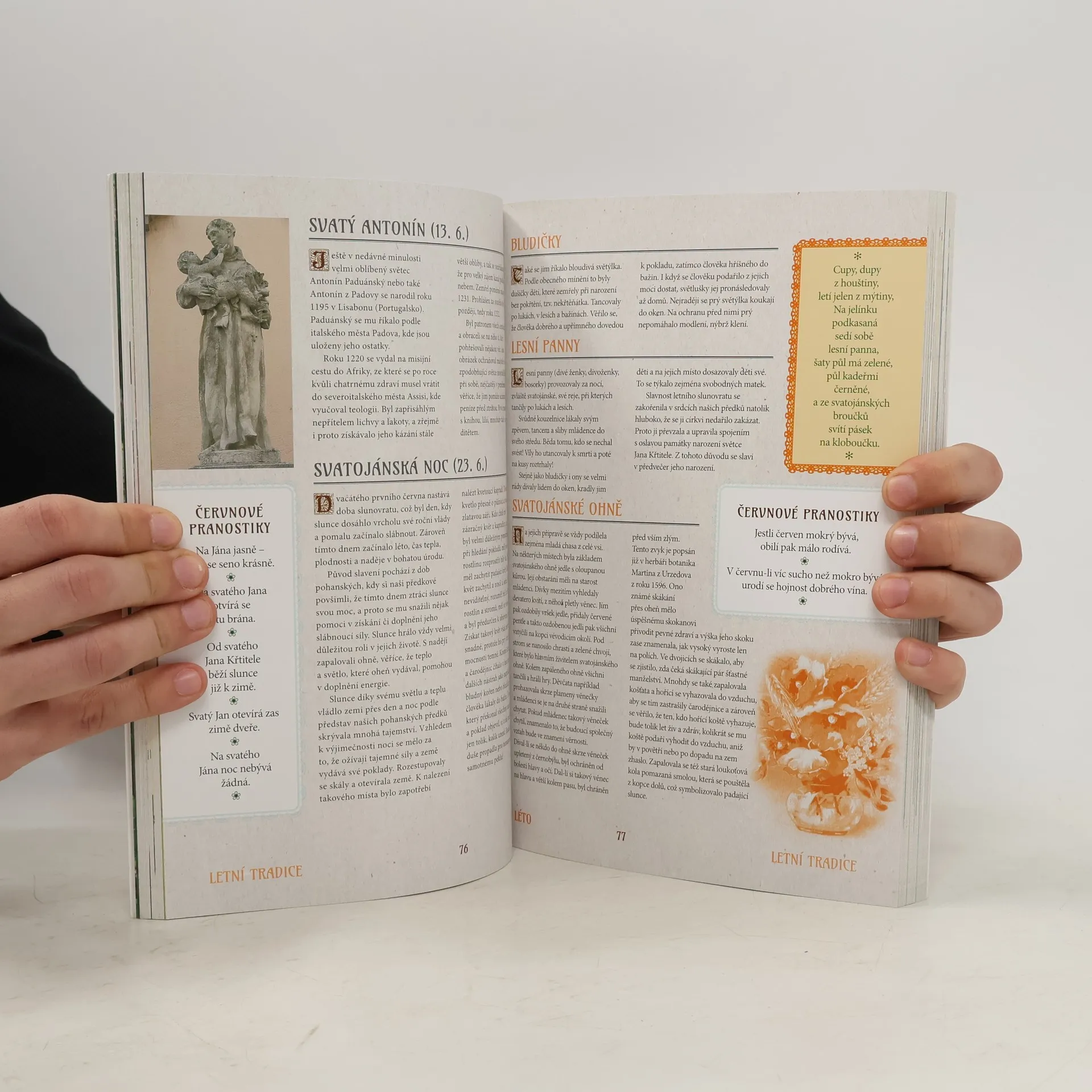 Kniha vás seznámí s nejvýznamnějšími svátky a lidovými obyčeji celého roku. Zároveň v ní najdete řadu užitečných nápadů k výrobě zvykoslovných předmětů: na jaře si upletete velikonoční pomlázku, v létě uvijete svatojánský věnec z lučního kvítí, na podzim si vyrobíte pestrobarevného papírového draka a v zimě ozdobíte vánoční stromeček tradičními lidovými ozdobami. Navíc vaše děti na těchto stránkách objeví starodávné kouzlo her našich babiček a dědečků a kuchařky se zde mohou inspirovat řadou osvědčených receptů ze staročeské kuchyně.