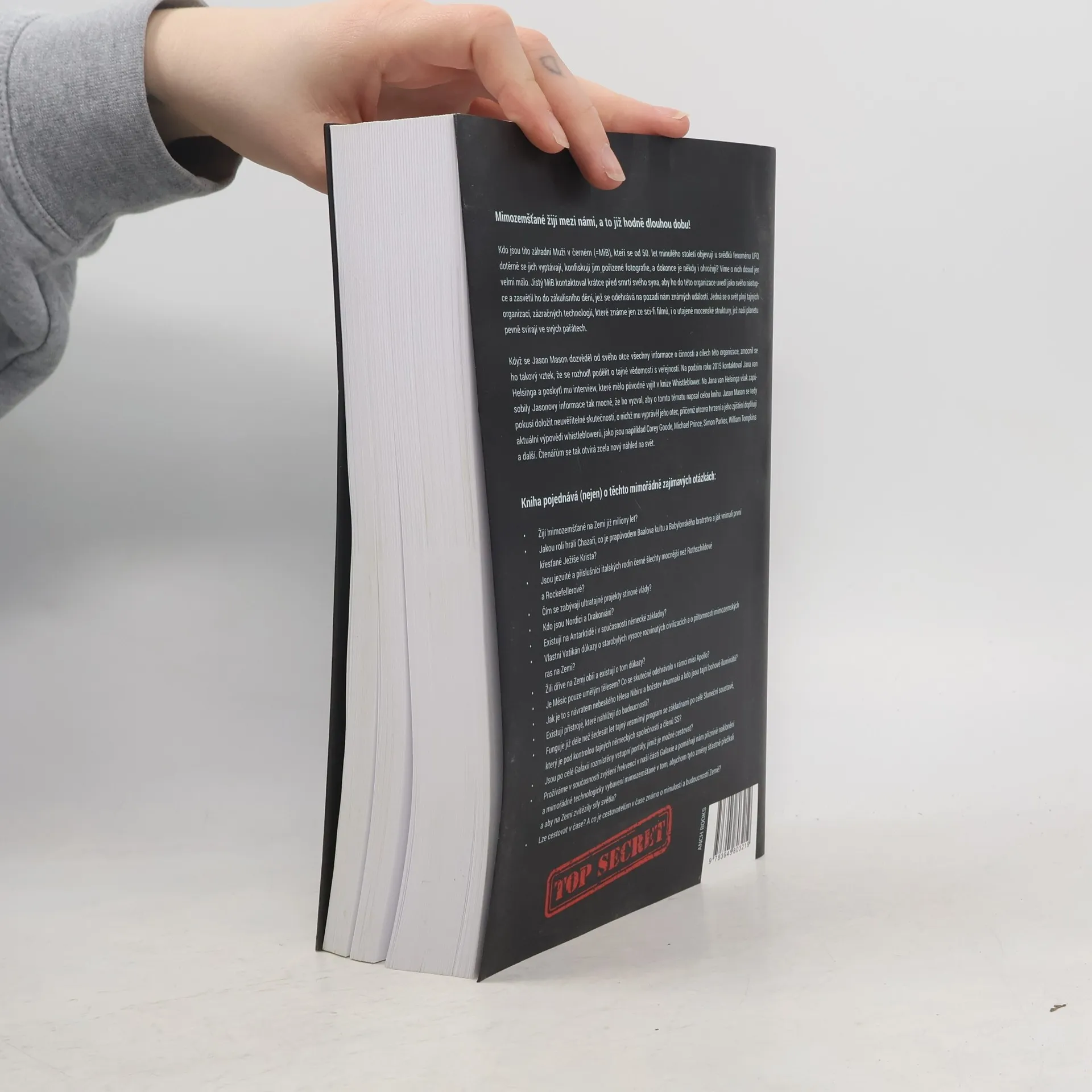 Mimozemšťané žijí mezi námi, a to již hodně dlouhou dobu! Kdo jsou tito záhadní Muži v černém (MiB)? Od 50. let minulého století se objevují u fenoménu UFO, dotěrně se vyptávají svědků, konfiskují jim pořízené fotografie, a někdy je dokonce i ohrožují. Víme o nich dosud jen velmi málo. Jistý MiB kontaktoval krátce před smrtí svého syna, uvedl ho do této organizace jako svého nástupce a zasvětil do zákulisního dění, jež se odehrává na pozadí nám známých událostí. Jedná se o svět plný tajných organizací, zázračných technologií, které známe jen ze sci-fi filmů, i utajených mocenských struktur, jež naši planetu pevně svírají v pařátech. Když se Jason Mason dozvěděl od svého otce všechny informace o činnosti a cílech této organizace, zmocnil se ho takový vztek, že se rozhodl podělit o tajné vědomosti s veřejností. Na podzim roku 2015 kontaktoval Jana van Helsinga a poskytl mu interview, které mělo původně vyjít v knize Whistleblower!. Na Jana van Helsinga zapůsobily Jasonovy informace tak mocně, že ho vyzval, aby o tomto tématu napsal celou knihu. Jason Mason se tedy pokusil doložit neuvěřitelné skutečnosti, o nichž mu vyprávěl jeho otec, a jeho tvrzení i zjištění doplňují aktuální výpovědi whistleblowerů, například Coreye Goodea, Michaela Prince, Simona Parkese, Williama Tompkinse a dalších. Čtenářům se tak otvírá zcela nový náhled na svět.