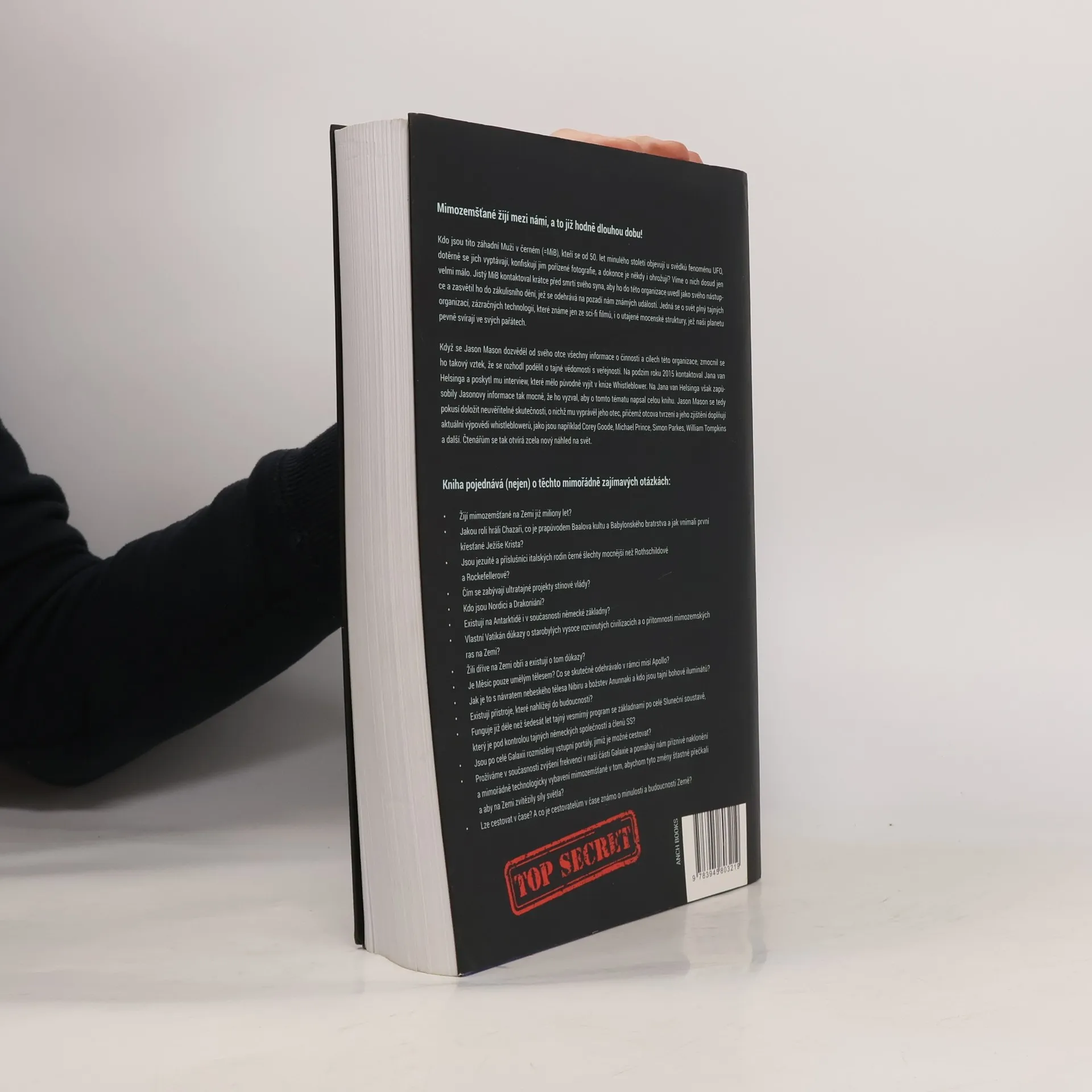 Mimozemšťané žijí mezi námi, a to již hodně dlouhou dobu! Kdo jsou tito záhadní Muži v černém (MiB)? Od 50. let minulého století se objevují u fenoménu UFO, dotěrně se vyptávají svědků, konfiskují jim pořízené fotografie, a někdy je dokonce i ohrožují. Víme o nich dosud jen velmi málo. Jistý MiB kontaktoval krátce před smrtí svého syna, uvedl ho do této organizace jako svého nástupce a zasvětil do zákulisního dění, jež se odehrává na pozadí nám známých událostí. Jedná se o svět plný tajných organizací, zázračných technologií, které známe jen ze sci-fi filmů, i utajených mocenských struktur, jež naši planetu pevně svírají v pařátech. Když se Jason Mason dozvěděl od svého otce všechny informace o činnosti a cílech této organizace, zmocnil se ho takový vztek, že se rozhodl podělit o tajné vědomosti s veřejností. Na podzim roku 2015 kontaktoval Jana van Helsinga a poskytl mu interview, které mělo původně vyjít v knize Whistleblower!. Na Jana van Helsinga zapůsobily Jasonovy informace tak mocně, že ho vyzval, aby o tomto tématu napsal celou knihu. Jason Mason se tedy pokusil doložit neuvěřitelné skutečnosti, o nichž mu vyprávěl jeho otec, a jeho tvrzení i zjištění doplňují aktuální výpovědi whistleblowerů, například Coreye Goodea, Michaela Prince, Simona Parkese, Williama Tompkinse a dalších. Čtenářům se tak otvírá zcela nový náhled na svět.