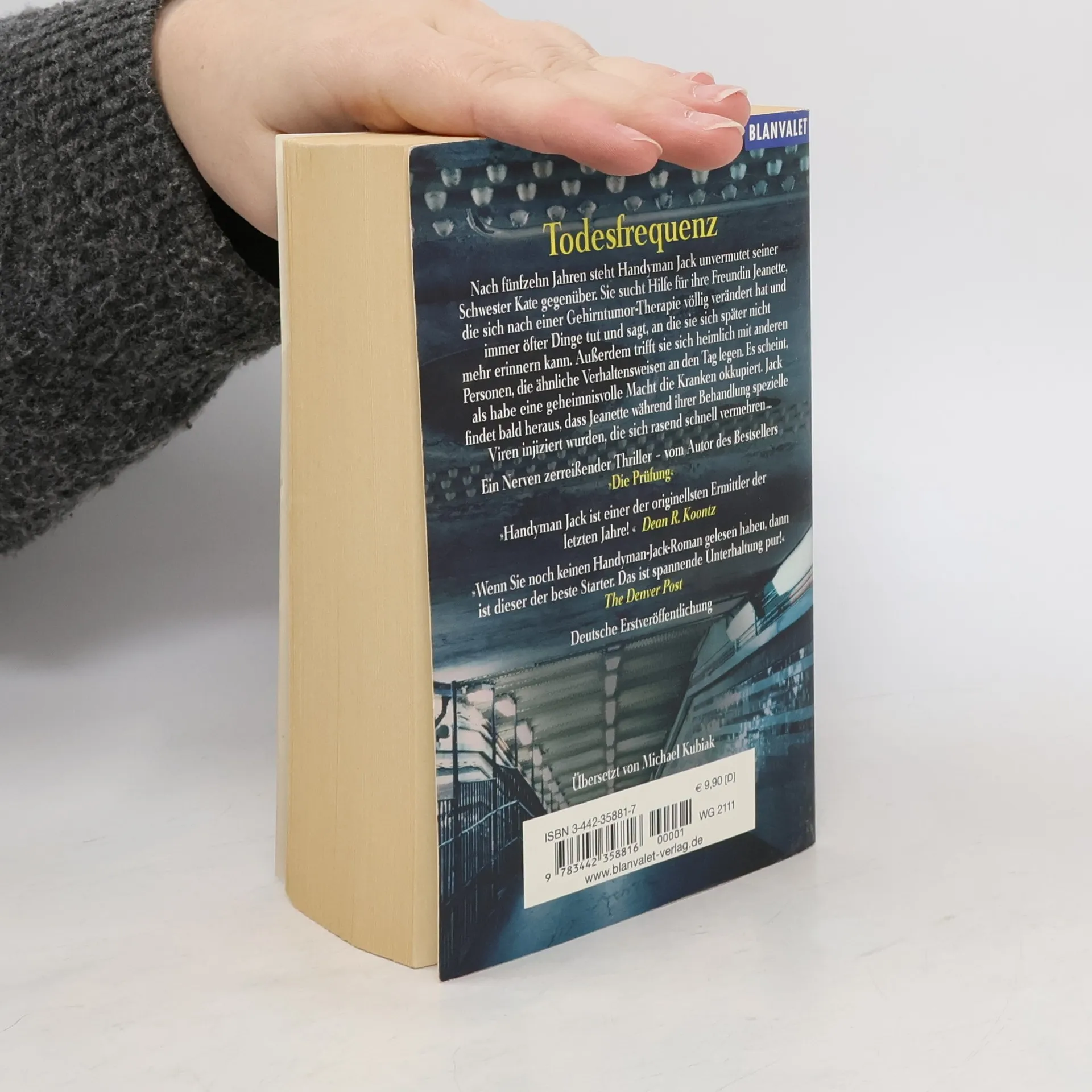Ein nervenzerfetzend spannender Thriller mit einem Schuss „Akte X“! Handyman Jack taucht erneut in die unheimlichen, übernatürlichen Dimensionen dieser Welt! Präsident des amerikanischen Handyman-Fan-Club ist kein Geringerer als Stephen King! „Spannende Unterhaltung pur!“ The Denver Post Unvermittelt steht Handyman Jack nach fünfzehn Jahren seiner Schwester Kate gegenüber, die ihn unwissentlich angeheuert hat: Ihre Freundin Jeanette, soeben von einer Therapie zur Behandlung eines Gehirntumors genesen, entwickelt absonderliche, gefährliche Aktivitäten und trifft sich heimlich mit fremden Personen, die ähnliche Verhaltensweisen an den Tag legen. Jack findet heraus, dass Jeanette Viren injiziert wurden, die von einer teuflischen Macht gesteuert werden. Als auch Kate sich plötzlich verändert, beginnt ein Wettlauf auf Leben und Tod.