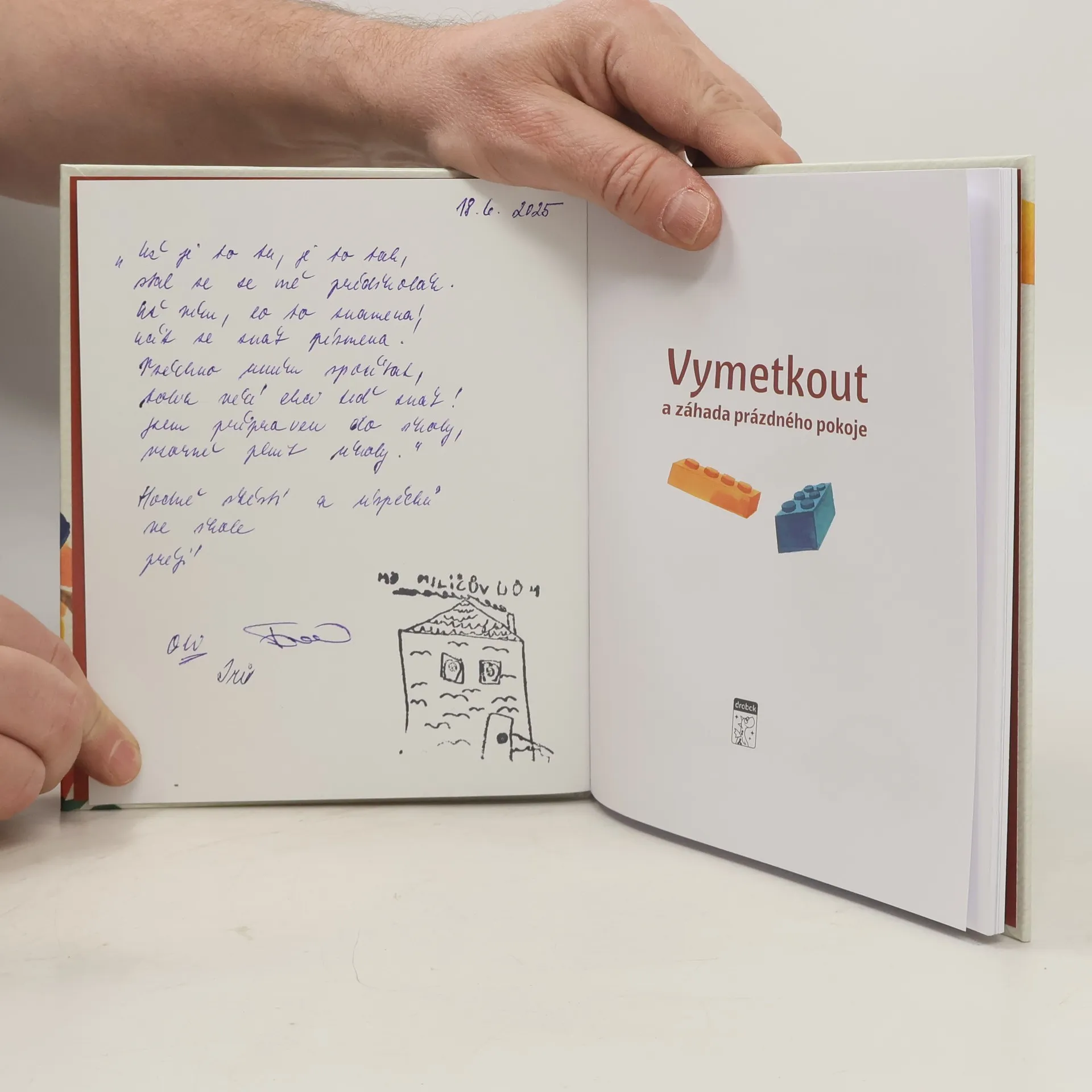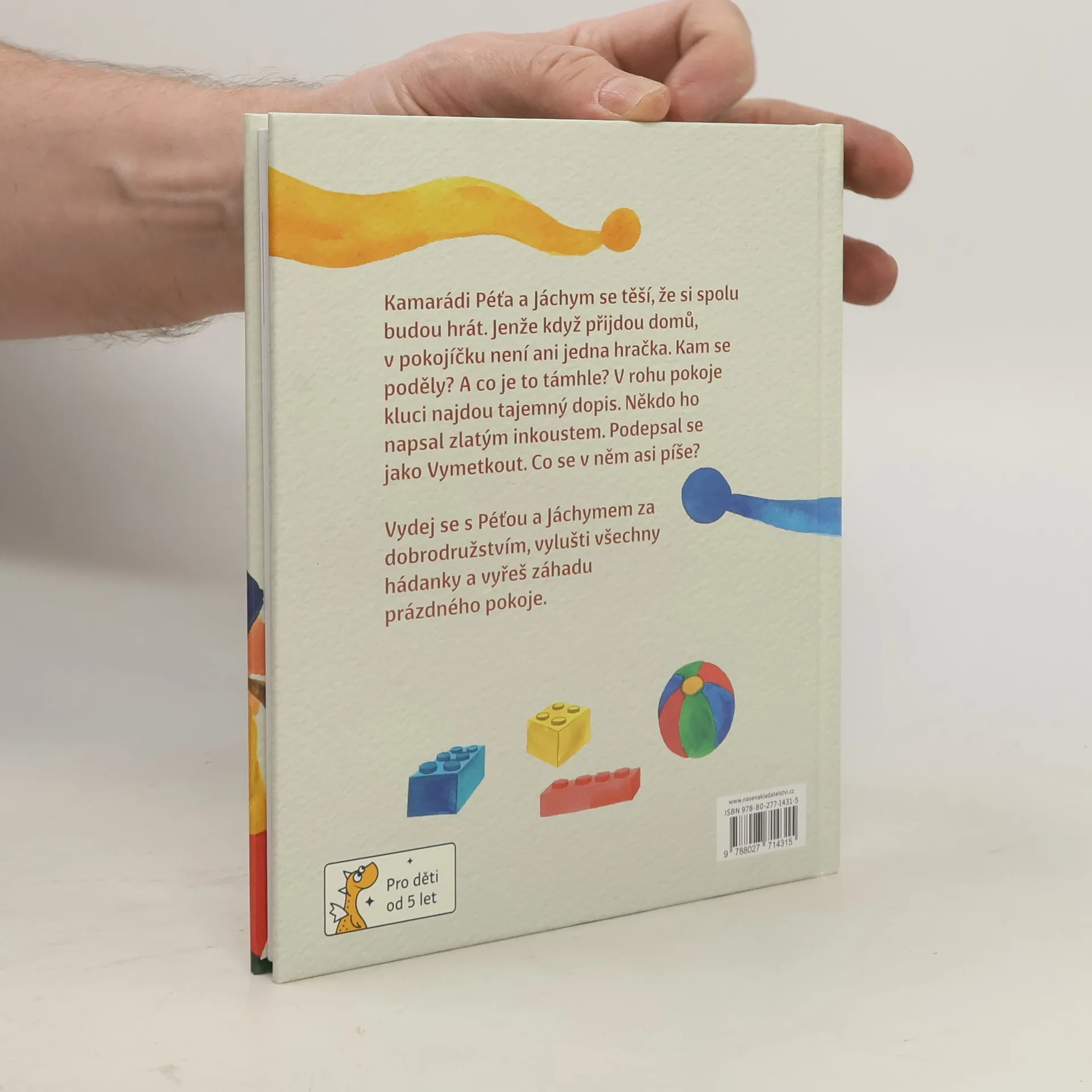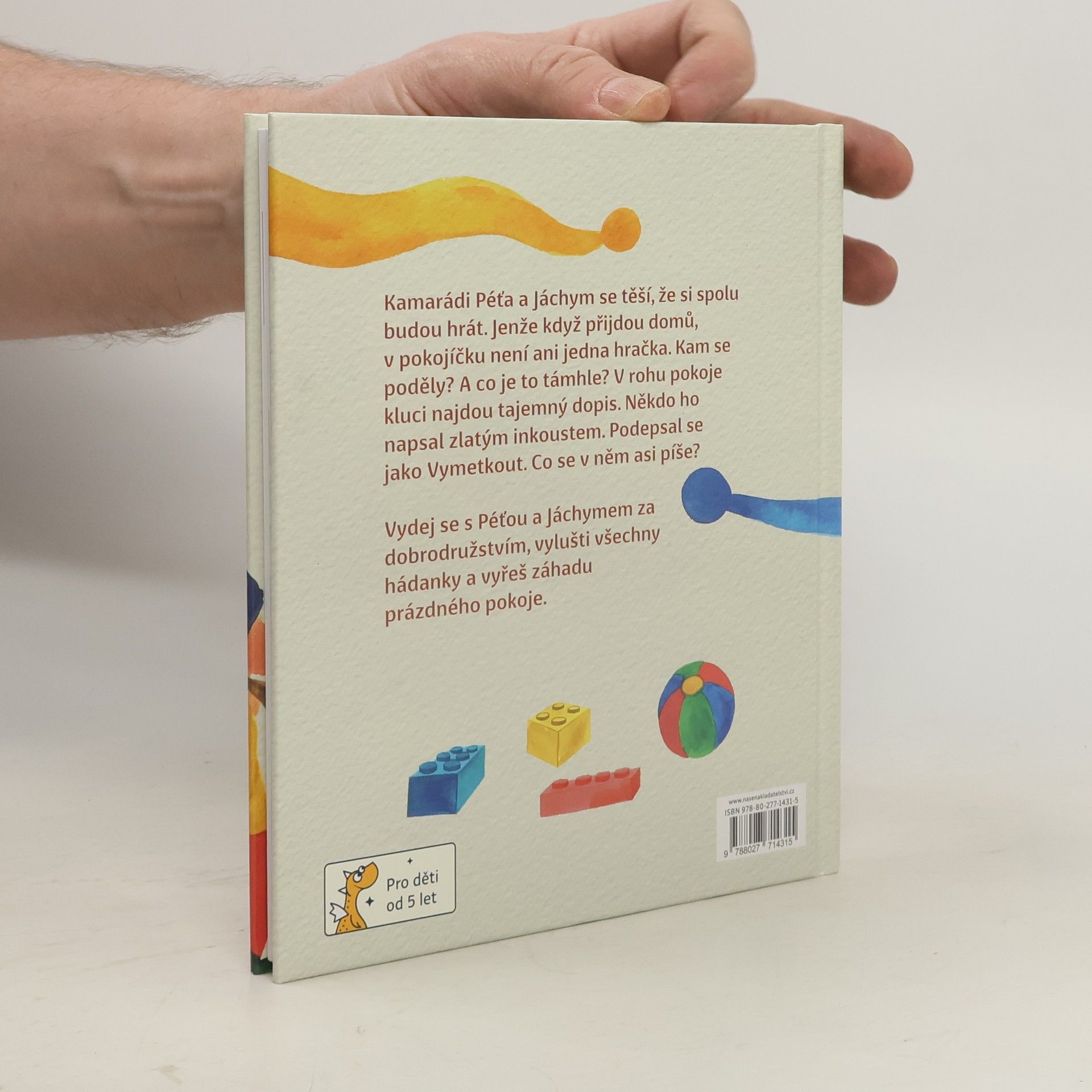 Poslední školkový den! A poslední školní! Prázdniny jsou tady! Jenže co se to stalo? Kam Péťovi zmizely hračky? „Ty jsi všechno uklidil?“ ptá se Jáchym. „Neuklidil jsem nic,“ říká Péťa. Jenže pokoj je úplně prázdný. Není tu ani jedna kostička lega. Ale co je to támhle? V rohu pokoje. Tajemný dopis napsaný zlatým písmem. S podivným podpisem: Vymetkout. Vydej se s Péťou a Jáchymem za dobrodružstvím, vylušti všechny hádanky a vyřeš záhadu prázdného pokoje. Edice Dráčkovo první čtení přináší dobrodružství pro předškoláky a žáky prvních a druhých tříd. Velké písmo, barevné ilustrace a veselý příběh, s jehož hrdiny se začínající čtenáři můžou snadno ztotožnit, podpoří radost ze čtení i odvahu zkusit se knížkou „prokousat“ samostatně. Kapitoly jsou krátké, aby čtení rychle ubíhalo, a mají pečlivě volená jednoduchá slova, aby si děti snáze vybudovaly své čtenářské sebevědomí. V závěru najdete také cvičení na rozvoj čtenářských dovedností vhodná jak pro samostatné, tak společné vypracovávání (např. v rámci vyučování ve škole). Knížka má tvrdou vazbu, aby v rodině vydržela i pro další generaci malých čtenářů.