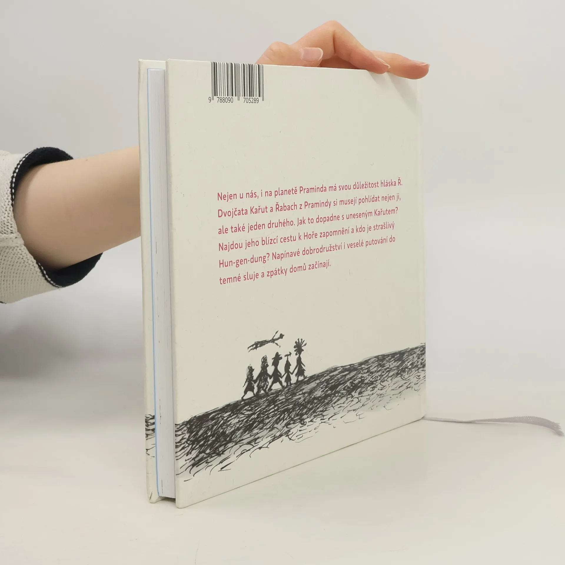 Nejen u nás, i na planetě Praminda má velkou důležitost hláska Ř. Dvojčata Kařut a Řabach si musejí pohlídat nejen ji, ale také jeden druhého. Jak to dopadne s uneseným Kařutem? Najdou jeho blízcí cestu k Hoře zapomnění? A kdo je strašlivý Hun-gen-dung? Napínavé dobrodružství i veselé putování do temné sluje a zpátky domů začínají.