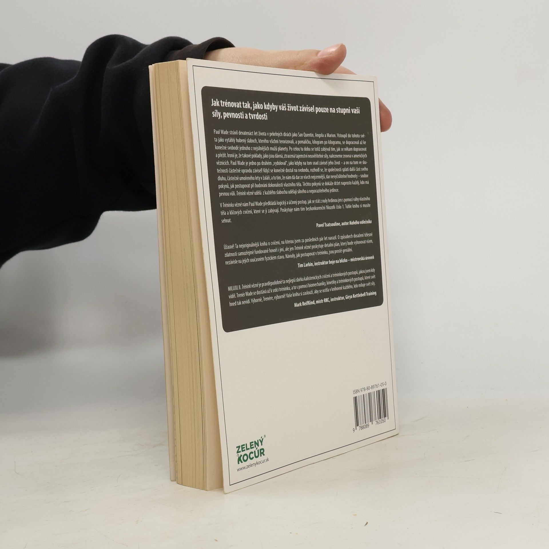 V čom spočíva sila a tajomstvo knihy Tréning väzňa? Tréning väzňa je technika cvikov s váhou vlastného tela, ktoré nám predstavuje autor Paul “Coach” Wade vo svojej knihe s pôvodným anglickým názvom Convict Conditioning. Ako cvičiť, keď život závisí od tvojej vlastnej sily a tvrdosti? Najviac metód súvisiacich s posilňovaním a zušľachťovaním svalstva je pre ľudí "domácich", totiž pre takých, ktorý žijú svoj život v relatívnom bezpečí. Svoju silu si pestujú pre hrdosť, vidia v tom výkon a nepoháňa ich samotný boj o prežitie. Profesionálny športovec trénuje, aby mal dobré výsledky na športovom podujatí, a nie preto, aby bezpečne vyšiel z boja o život ako víťaz. Paul Wade strávil devätnásť pekelných rokov na takých miestach, ako sú väznica San Quentin, Angola, či Marion. Brány väznice prekročil ako bojazlivý a vychudnutý chlapček a vyslobodil sa odtiaľ ako jeden z najsilnejších mužov sveta. Paul Wade využil a obetoval čas strávený za múrmi kriminálu na to, aby vyvinul desivú silu potrebnú v boji o holý život. Kto by si pomyslel, že zabudnuté tajomstvo sily nájdeme práve v amerických väzniciach! Paul Wade postupne vyhrabával tieto tajomstvá, akoby mu život visel na vlásku a mnohokrát to tak naozaj mohlo byť. Paul Wade sa vyslobodil: splatil svoju dlžobu spoločnosti. Nielen skrz hrôzostrašné zážitky, ale dlh splatil aj najväčším darom, aký nám mohol dopriať: techniky tréningov, ktoré spísal v knihe, môžu prospieť každému, kto už má plné zuby slabosti a túži po skutočnej sile. Technika Dôsledným dodržaním techník tréningu môžeme podľa autora dosiahnuť takú nebývalú, úžasnú silu, vďaka ktorej budeme schopný robiť cviky, ktorých je schopný len málokto. Napr.: - kľuky na jednej ruke - zhyby na jednej ruke - drepy na jednej nohe Všetky tieto výzvy dosiahneme výlučne cvikmi s váhou vlastného tela, bez použitia akéhokoľvek náčinia. Na to, aby sme boli schopný vykonať hore spomínané majstrovské cviky, musíme prejsť deviatimi cvikmi, z ktorých prvý cvik vykoná aj najviac lenivý človek, ktorý vykonáva sedavú práce bez rokov cvičenia. Pomenovanie Pomenovanie tejto techniky pramení z cvičení, ktoré je možné robiť bez akéhokoľvek vybavenia, bez činiek, na akomkoľvek mieste, hoci aj vo väzenskej cele. Autor Paul“Coach” Wade strávil devätnásť rokov v amerických väzniciach, kde vyvíjal túto techniku trénovania. Tomi “Kid” odporúča. Samotný tréning ktorý opisuje táto kniha si vyskúšal aj Tomi “Kid”, majster sveta v profesionálnom boxe. O jeho odporúčaniach, pocitoch a dojmoch, ktoré ho sprevádzali počas trénovania sa dozviete práve v tejto knihe.