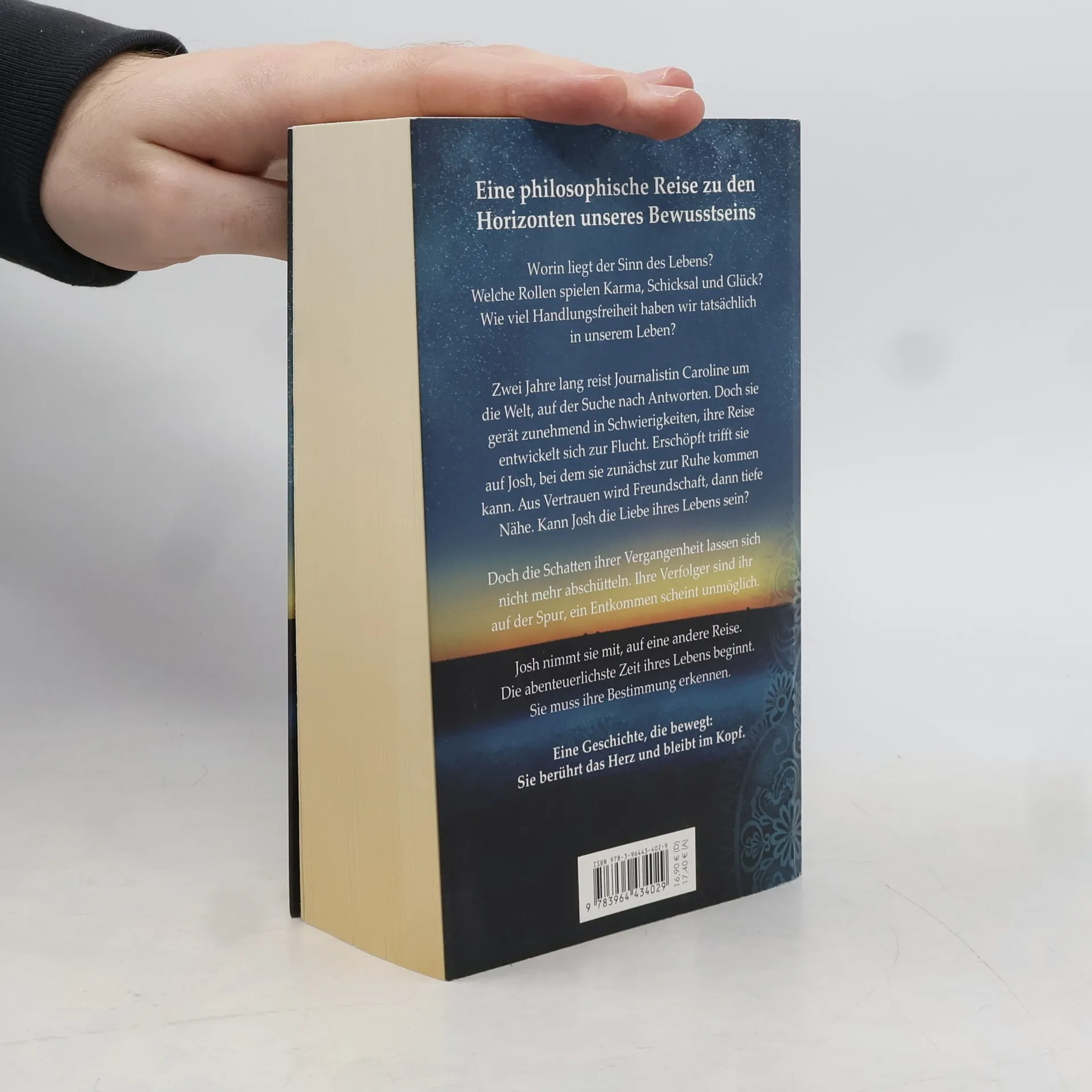 Eine Liebesgeschichte, ein Thriller und ein philosophischer Roman vereinen sich in dieser fesselnden Erzählung. Eine schicksalhafte Begegnung in Salzburg führt die Journalistin Caroline auf eine zweijährige Reise um die Welt, auf der Suche nach Freiheit und dem Sinn des Lebens. Doch ihre Reise wird zur Flucht, als sie in Schwierigkeiten gerät. Erschöpft trifft sie Josh, bei dem sie zur Ruhe kommt. Aus Vertrauen wird Freundschaft, doch die Schatten ihrer Vergangenheit verfolgen sie. Ihre Verfolger sind ihr dicht auf den Fersen, und ein Entkommen scheint unmöglich. Josh nimmt Caroline mit auf eine abenteuerliche Reise, auf der sie ihre Bestimmung erkennen muss. Vor ihr liegen große Herausforderungen, die sie an ihre Grenzen bringen. Ihre Liebe steht erneut auf der Kippe. Kann sie entkommen? Und welche Rolle spielt Josh in diesem gefährlichen Spiel um Leben und Tod? Ein Wettlauf gegen die Zeit beginnt. Die Geschichte berührt das Herz und bleibt im Gedächtnis. Gleichzeitig erforscht der Roman uralte philosophische Denkmuster und Fragen nach dem Sinn des Lebens, Karma, Schicksal und Glück. Probleme sind Teil des Lebens, doch wir können entscheiden, wie wir mit ihnen umgehen. Manchmal genügt ein Perspektivwechsel, um Lösungen zu erkennen. Lebensentwürfe sind oft nicht geradlinig, doch darin liegen unsere größten Chancen.