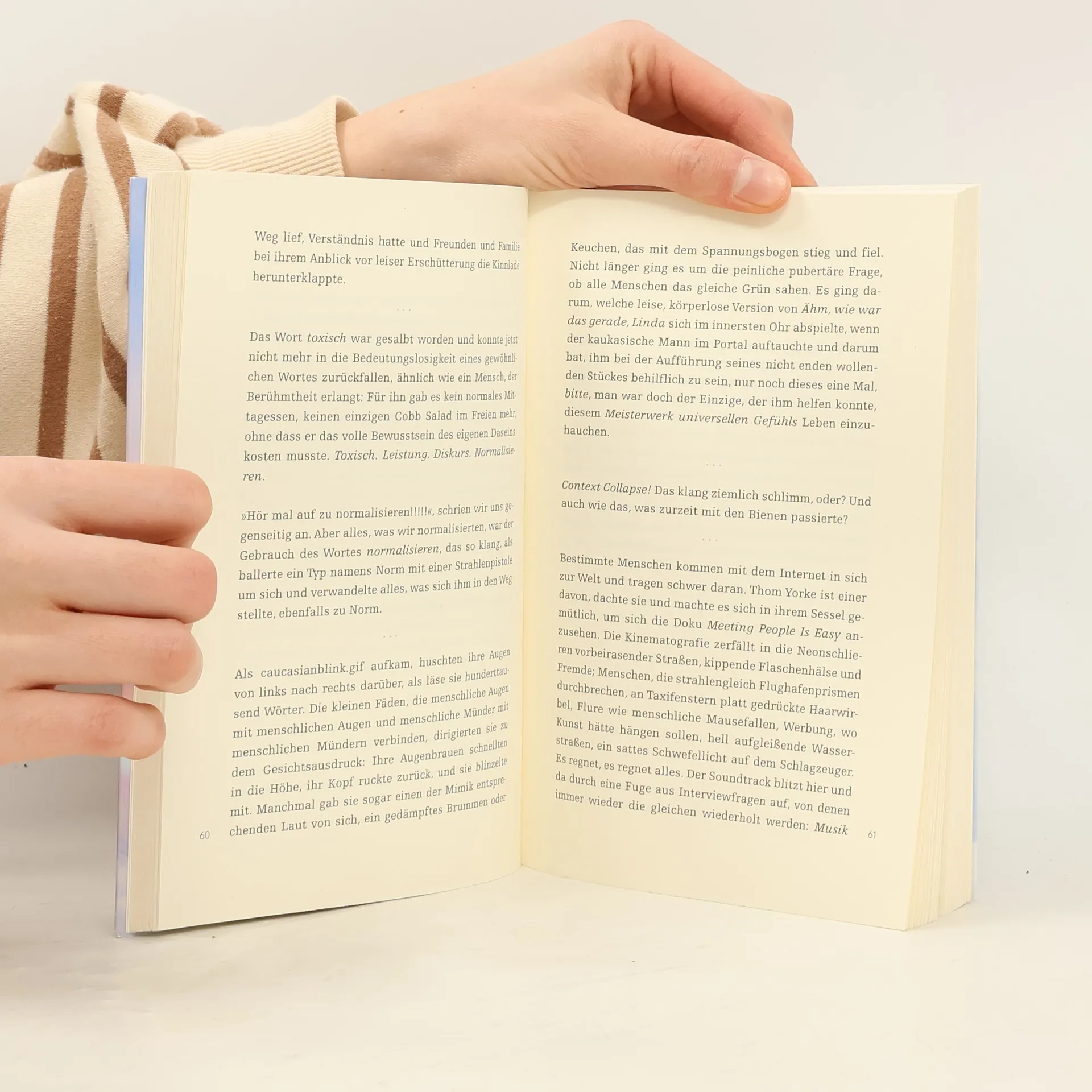 Sie ist ein Online-Star. Sie reist um die Welt, um ihre begeisterten Fans zu treffen. Das sogenannte »Portal« ist ihr Medium: In diesem virtuellen Raum fügt sich eine Lawine von Bildern, Details und Referenzen zu einer unendlichen Landschaft zusammen, die Post-Sense, Post-Ironie, Post-Alles ist. Aber was passiert, wenn eine Tragödie in das echte Leben einbricht und alles verändert? »Und keiner spricht darüber« ist ein Liebesbrief an Sprache und Literatur und gleichzeitig eine moderne Meditation über Liebe und die Kraft menschlicher Nähe.