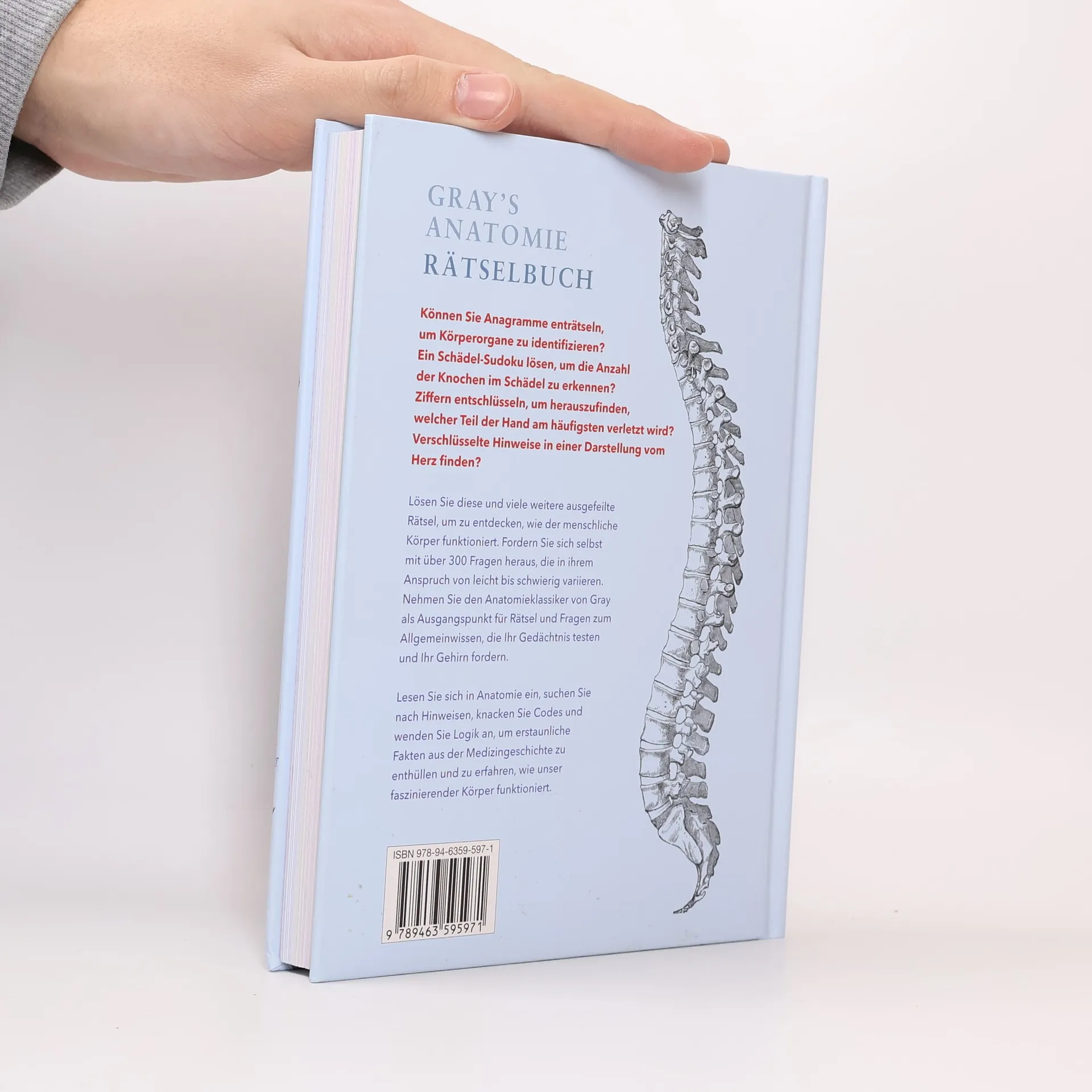 Glauben Sie, dass Sie Ihren Schädel von Ihrem Schlüsselbein unterscheiden können? Das Schienbein von der Luftröhre? Überlegen Sie noch mal ... Können Sie Anagramme enträtseln, um Körperorgane zu identifizieren? Ein Schädel-Sudoku lösen, um die Anzahl der Knochen im Schädel zu erkennen? Ziffern entschlüsseln, um herauszufinden, welcher Teil der Hand am häufigsten verletzt wird? Verschlüsselte Hinweise in einer Grafik vom Herzen finden? Lösen Sie diese und viele weitere ausgefeilte Rätsel, um zu entdecken, wie der menschliche Körper funktioniert. Fordern Sie sich selbst mit über 300 Fragen heraus, die in ihrem Anspruch von leicht bis schwierig variieren. Nehmen Sie den Anatomieklassiker von Gray als Ausgangspunkt für Rätsel und Fragen zum Allgemeinwissen, die Ihr Gedächtnis testen und Ihr Gehirn fordern. Lesen Sie sich in Anatomie ein, suchen Sie nach Hinweisen, knacken Sie Codes und wenden Sie Logik an, um erstaunliche Fakten aus der Medizingeschichte zu enthüllen und zu erfahren, wie unser faszinierender Körper funktioniert.