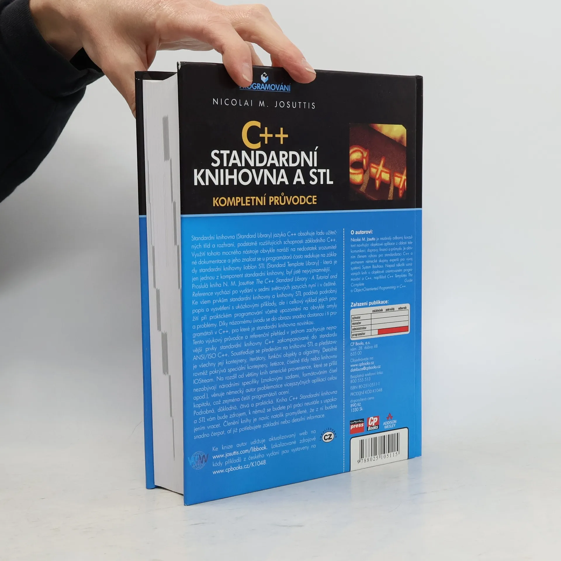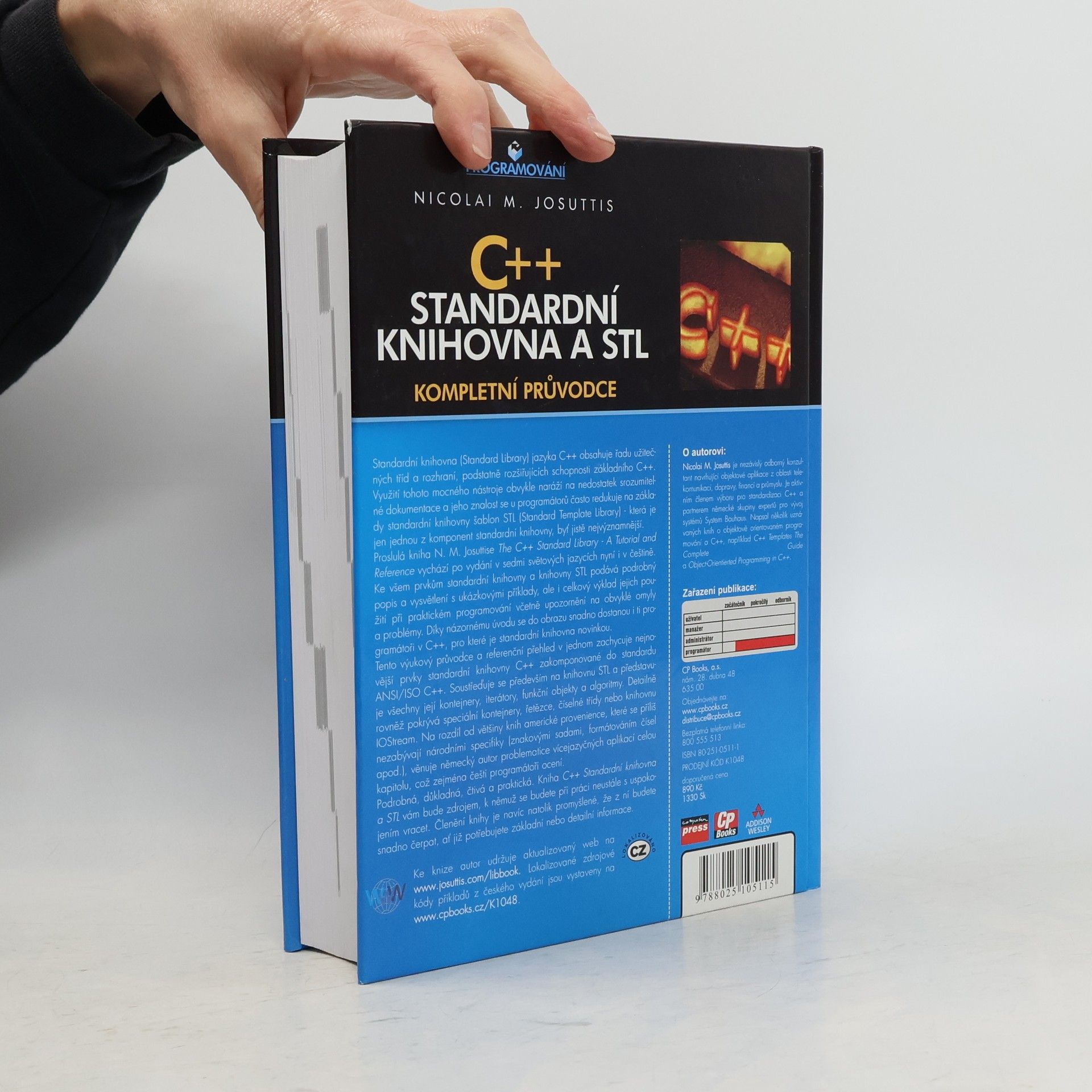 Standardní knihovna jazyka C++ nabízí řadu užitečných tříd a rozhraní, které rozšiřují schopnosti základního C++. Často však chybí srozumitelná dokumentace, a znalosti programátorů se omezují na základy standardní knihovny šablon STL, která je pouze jednou z jejích komponent. Kniha N. M. Josuttise přináší podrobný popis všech prvků standardní knihovny a STL, včetně ukázkových příkladů a praktického výkladu jejich použití. Upozorňuje na běžné omyly a problémy, což usnadňuje orientaci i těm, kteří se se standardní knihovnou teprve seznamují. Tento výukový průvodce a referenční přehled pokrývá nejnovější prvky standardní knihovny C++ podle standardu ANSI/ISO. Zaměřuje se na knihovnu STL a představuje její kontejnery, iterátory, funkční objekty a algoritmy. Detailně se věnuje také speciálním kontejnerům, řetězcům, číselným třídám a knihovně IOStream. Na rozdíl od většiny amerických knih, které opomíjejí národní specifika, autor věnuje kapitolu vícejazyčným aplikacím, což ocení zejména čeští programátoři. Kniha je podrobná, čtivá a praktická, stane se vaším cenným zdrojem informací, ať už potřebujete základní nebo detailní znalosti. Její promyšlené členění usnadňuje čerpání informací.