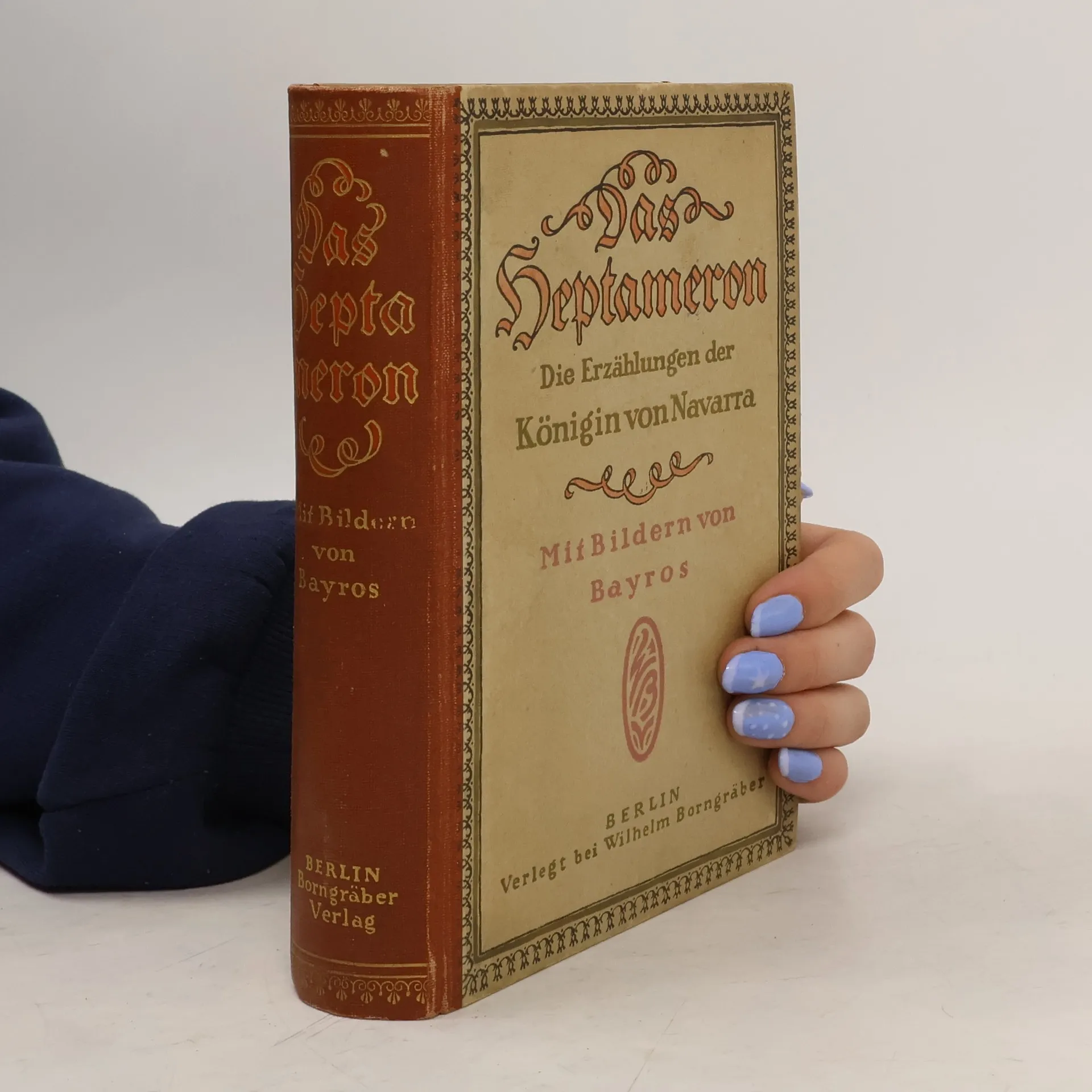 Margarete von Navarra: Das Heptameron. Die Erzählungen der Königin von Navarra Erstdruck unter dem Titel »L'Heptaméron des nouvelles de tresillustre et tresexcellente Princesse Marguerite de Valois, Royne de Navarre« Paris 1558 (unvollst.) und 1559. Druck der ersten deutschen Übersetzung »Margeritha, der Königin von Navarra, romantische Erzählungen« von F. A. K. Werthes und J. Ith., 2 Bde.: Berlin 1791. Neuausgabe. Herausgegeben von Karl-Maria Guth. Berlin 2017. Textgrundlage ist die Ausgabe: Der Heptameron. Erzählungen der Königin von Navarra. Aus dem Französischen übersetzt von Wilhelm Förster, Leipzig: Bibliographisches Institut, [o.J.]. Die Paginierung obiger Ausgabe wird in dieser Neuausgabe als Marginalie zeilengenau mitgeführt. Umschlaggestaltung von Thomas Schultz-Overhage unter Verwendung des Bildes: Julius LeBlanc Stewart, Im Schlafzimmer, 1880. Gesetzt aus der Minion Pro, 11 pt.