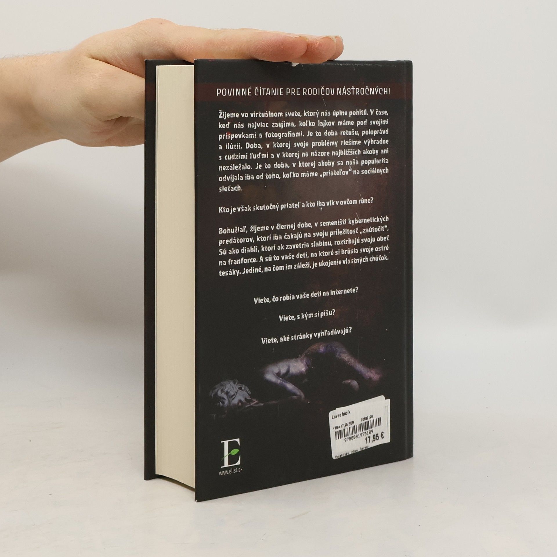 Povinné čítanie pre rodičov ... násťročných! Žijeme vo virtuálnej dobe, ktorá nás úplne pohltila. V dobe, kde nás najviac zaujíma, koľko lajkov máme pod svojimi príspevkami a fotografiami. Je to doba retušu, poloprávd a ilúzií. Doba, v ktorej svoje problémy riešime výhradne s cudzímiľuďmi, a v ktorej na názore najbližších akoby ani nezáležalo. Je to doba, v ktorej akoby sa naša popularita odvíjala iba od toho, koľko máme „priateľov“ na sociálnych sieťach. Kto je však skutočným priateľom a kto iba vlkom v ovčom rúne? Bohužiaľ, žijeme v čiernej dobe, v semeništi kybernetických predátorov, ktorí iba čakajú na svoju príležitosť „zaútočiť!“ Sú ako diabli, ktorí ak zavetria slabinu, roztrhajú svoju obeť na franforce. A sú to vaše deti, na ktoré si brúsia svoje ostré tesáky. Jediné, na čom im záleží, je ukojenie vlastných chúťok a ich krv. Viete, čo robia vaše deti na internete? Viete s kým si píšu? Viete aké stránky vyhľadávajú? Ak vám záleží na bezpečí vašich detí, nech je vám tento príbeh výstrahou!!!