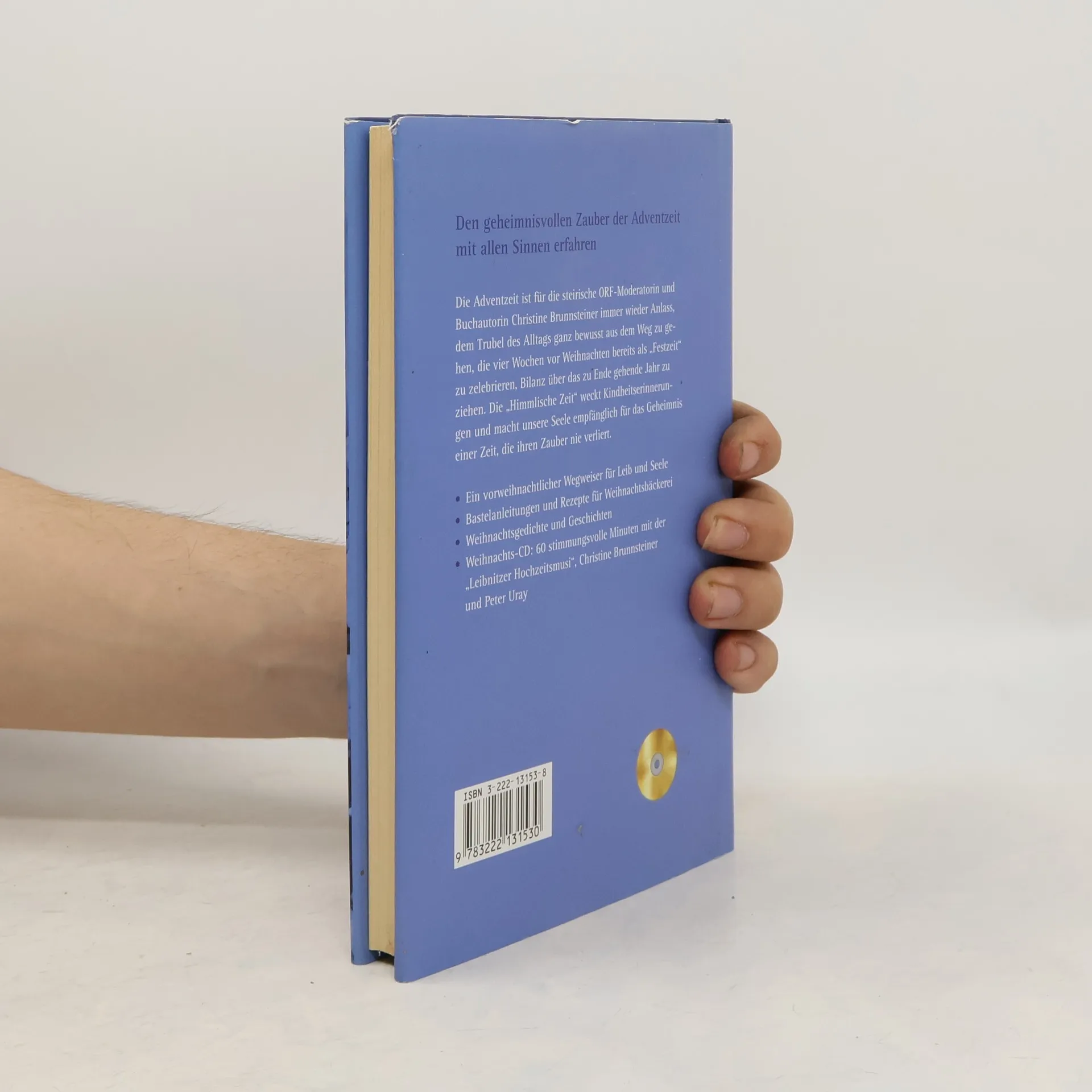 Die Adventzeit ist für die steirische ORF-Moderatorin und Buchautorin Christine Brunnsteiner immer wieder Anlass, dem Trubel des Arbeitsalltags ganz bewusst aus dem Weg zu gehen, die vier Wochen vor Weihnachten bereits als „Festzeit“ zu zelebrieren, Bilanz über das zu Ende gehende Jahr zu ziehen. Die "Himmlische Zeit" weckt Kindheitserinnerungen und macht unsere Seele empfänglich für das Geheimnis einer Zeit, die ihren Zauber nie verliert. So finden sich in diesem vorweihnachtlichen Wegweiser für Leib und Seele neben Bastelanleitungen und Rezepten für Weihnachtsbäckerei, neben Weihnachtsgedichten und Geschichten auch Anregungen dazu, wie man Ruhe und dadurch den Weg zu sich selbst finden kann. Mit Weihnachts-CD! Christine Brunnsteiner und Peter Uray lesen Weihnachtsgeschichten, stimmungsvoll untermalt von der "Leibnitzer Hochzeitsmusi".