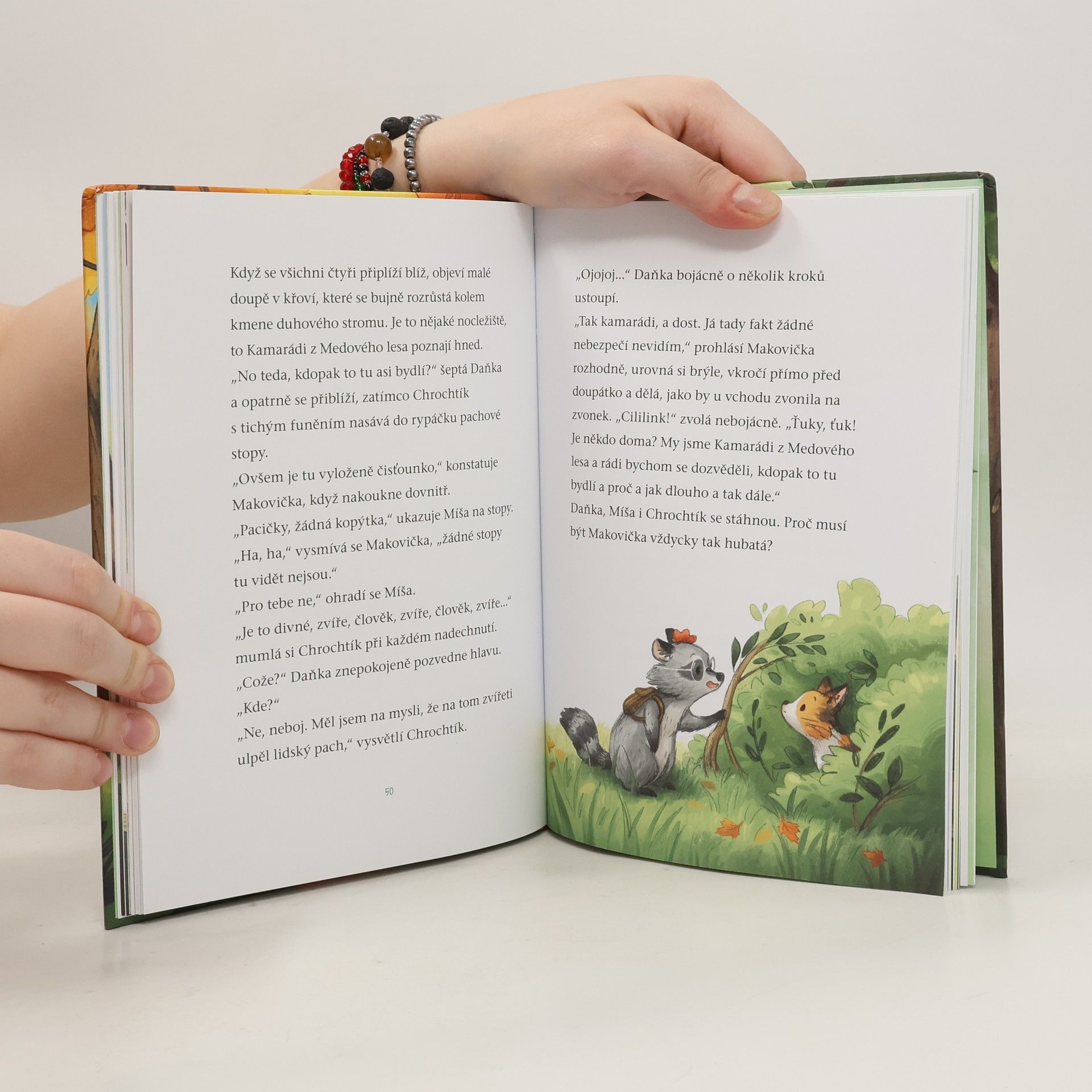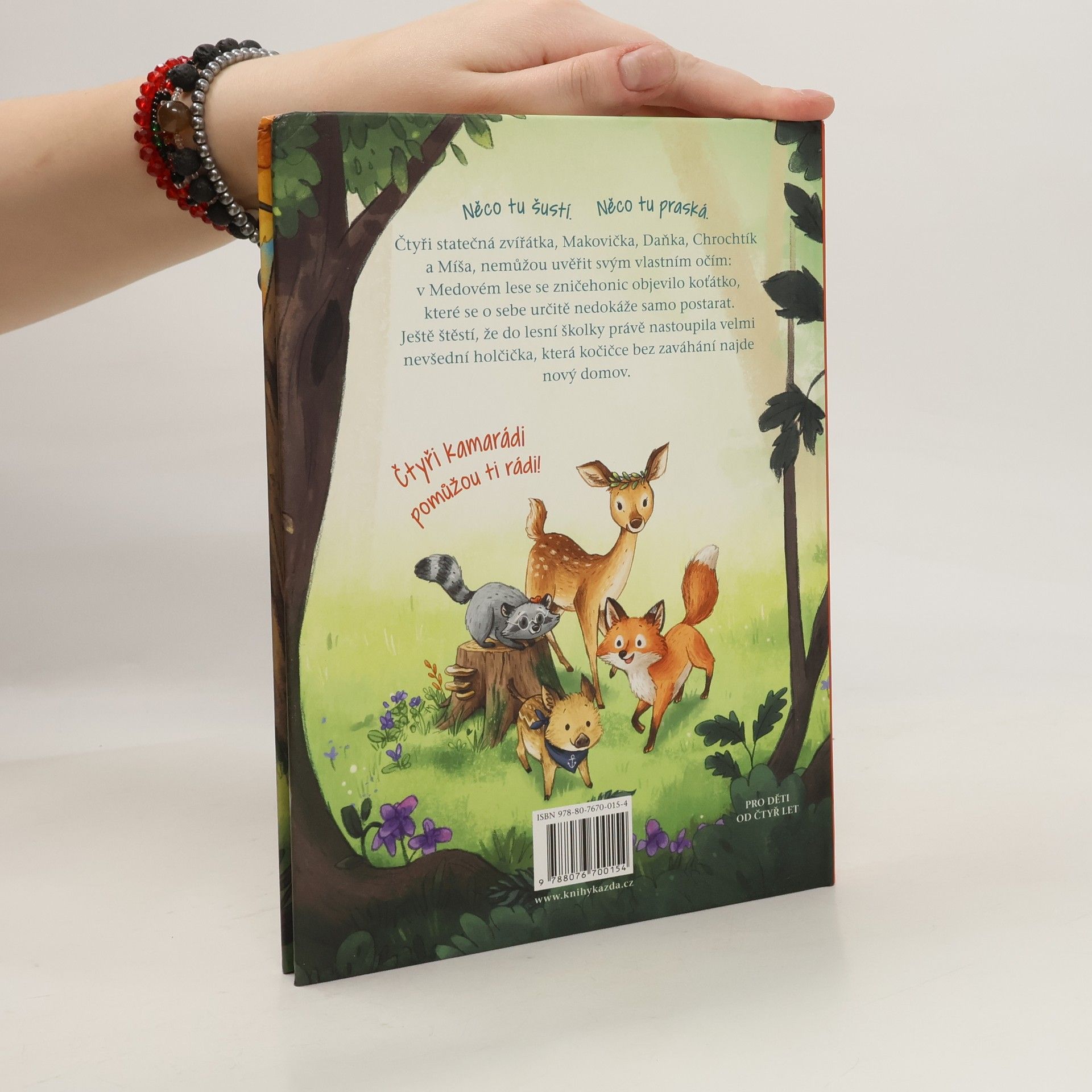 Čtyři statečná zvířátka, Makovička, Daňka, Chrochtík a Míša, nemůžou uvěřit svým vlastním očím: v Medovém lese se zničehonic objevilo koťátko, které se o sebe určitě nedokáže samo postarat. Ještě štěstí, že do lesní školky právě nastoupila velmi nevšední holčička, která kočičce bez zaváhání najde nový domov. Už znáte naše kamarády? •lišák Míša - Do všeho strká svůj zvědavý čumáček a dokáže v lese objevit ta nejlepší dobrodružství. A dobrý čuch má i na svoje kamarády – kamarádství a dobrá parta jsou pro něj totiž to nejdůležitější. •laňka Daňka - Je opatrná a zdrženlivá a neustále si s něčím dělá starosti. Ovšem nikdo není schopen vnímat pocity a nálady tak dobře jako ona. Proto jsou za její moudrá slova vždycky všichni vděční. •divoké prasátko Chrochtík - Je pěkně mazané a neustále hledá nějaká dobrodr užství – a jeho maminka hledá jeho. Chrochtík své kamarády dokáže rozesmát i přivést k úžasu. •mývalka Makovička - Ze všeho nejradši se o všechny stará, neúnavně pečuje o čistotu a každou chvíli radostně zatleská. Své jméno dostala podle vlčího máku a červenou kytičku taky ze všeho nejradši nosí ve vláskách.