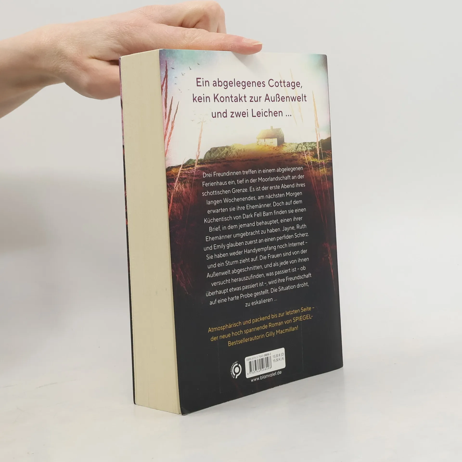 »Wenn ihr das hier lest, habe ich bereits einen eurer Ehemänner getötet.« Der neue packende Roman von SPIEGEL-Bestsellerautorin Gilly Macmillan. Drei Frauen treffen in einem abgelegenen Ferienhaus ein, tief in der Moorlandschaft von Northumbria an der schottischen Grenze. Es ist der erste Abend ihres langen Wochenendes, am nächsten Morgen erwarten sie ihre Ehemänner. Doch auf dem Küchentisch von Dark Fell Barn finden sie einen Brief, in dem jemand behauptet, einen ihrer Ehemänner umgebracht zu haben. Die drei Frauen glauben zuerst an einen perfiden Scherz. Doch sie haben keinen Handyempfang. Es gibt kein Internet – und ein Sturm zieht auf. Die Frauen sind von der Außenwelt abgeschnitten, und als jede von ihnen versucht herauszufinden, was passiert ist – ob überhaupt etwas passiert ist – werden ihre Freundschaften auf eine harte Probe gestellt. Die Situation droht, zu eskalieren ... Packend, perfide, atmosphärisch: Lesen Sie auch »Die Nanny« und »Die Vertraute«.