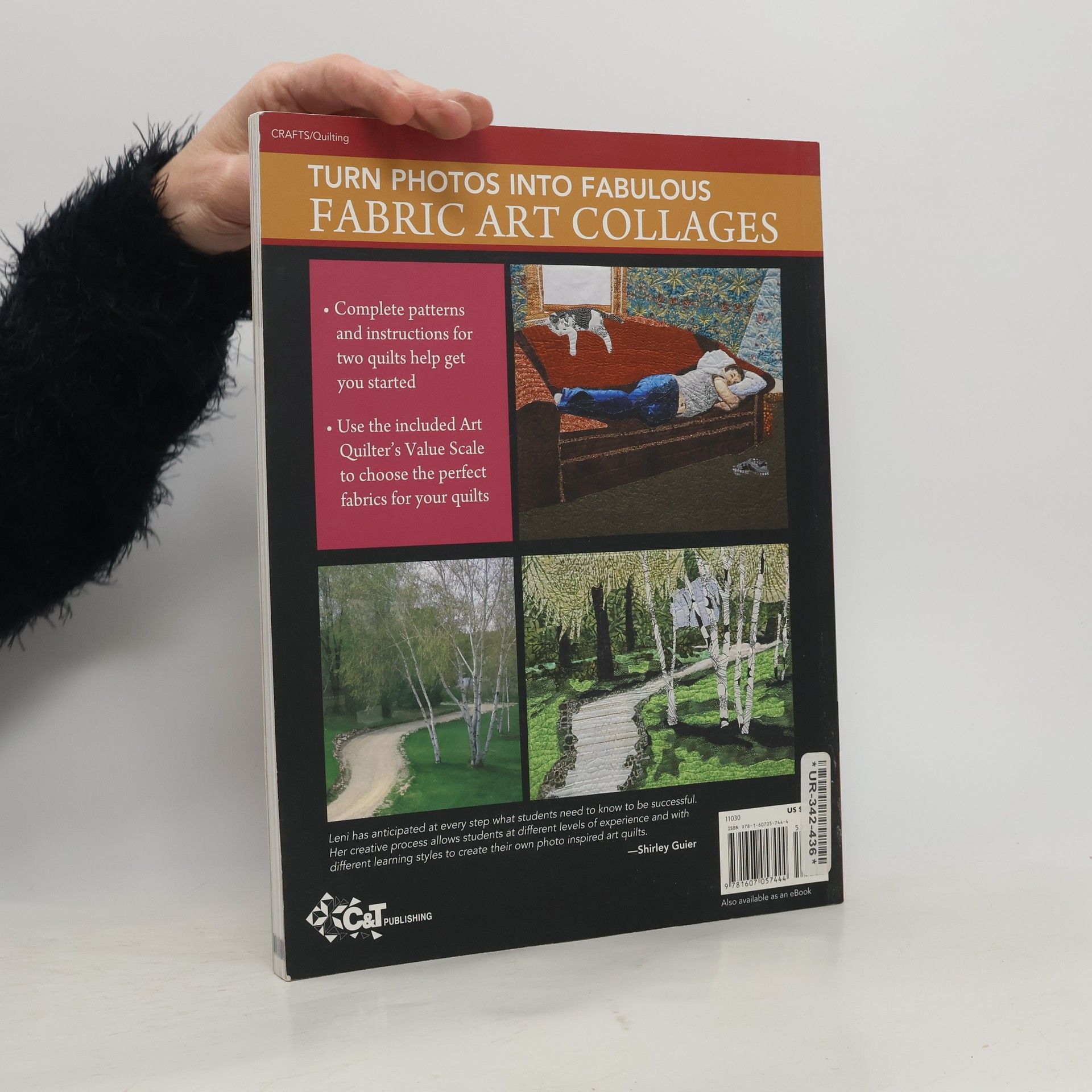 You'll be surprised how easy it is to transform a photo into gallery-worthy fabric art with Leni Wiener's simple methods. Leni walks you step by step through choosing the right fabrics; creating patterns with free software; depicting common elements, such as grass, trees, water, and faces; layering and sewing your collages; and finishing your work for display. Complete patterns and instructions for two quilts help get you started. Use the included Art Quilter's Value Scale to choose the perfect light and dark fabrics for your quilts. Loaded with helpful photos, this guide is a virtual art class in a book.