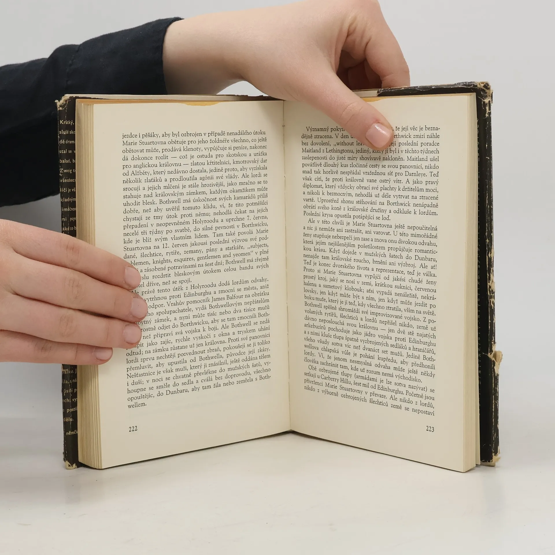 V knize je velice poutavě popsán životní příběh Marie Stuartovny (8. prosince 1542 – 8. února 1587) a dopodrobna zobrazena psychologie jejího jednání. Marie Stuartovna byla dcera skotského krále Jakuba V. z rodu Stuartů a francouzské šlechtičny Marie de Guise. Byla francouzskou (1559–1560) avládnoucí skotskou (1542–1567) královnou. Skotskou královnou se stala už jako šestidenní dítě poté, co její otec zemřel na choleru. Už v prvním roce svého života, 9. září 1543, byla korunována skotskou královnou. Jako šestileté dítě, roku 1548, byla zaslíbena jako budoucí manželka francouzskému dauphinovi Františkovi a téhož roku také do Francie dorazila. Francouzskou královnou se stala jakožto manželka krále Františka II., s nímž jakožto čtrnáctiletým uzavřela 24. dubna 1558 ve věku 15 let plánovaný sňatek. Necelé dva měsíce po tomto sňatku Král Jindřich II. tragicky zemřel a František nastoupil na trůn. V zemi však fakticky vládli strýcové Marie z rodu Guisů. V osmnácti letech ovdověla, opustila svoji milovanou Francii a vrátila se zpět do rodného Skotska. Po smrti Marie I. Tudorovny neuznala za právoplatnou anglickou královnu její nevlastní sestru Alžbětu I., svoji tetu z druhého kolena, a sama se začala titulovat také jako anglická královna, neboť byla pravnučkou krále Jindřicha VII. Tudora. O získání londýnského trůnu se však nikterak nesnažila.