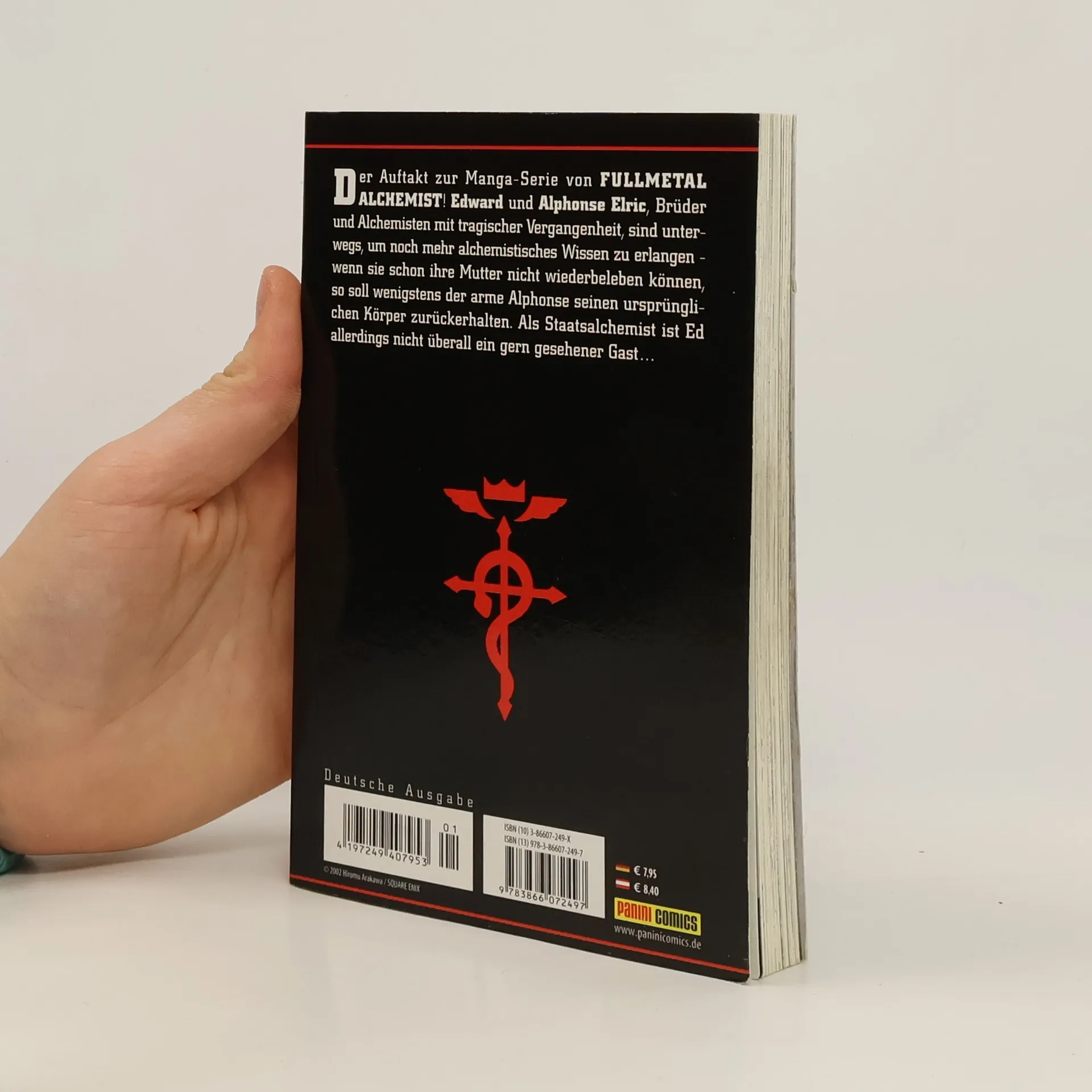 FULLMETAL ALCHEMIST 1 Der Auftakt zur Hit-Serie von FULLMETALL ALCHEMIST! Die Brüder Edward und Alphonse haben vor Jahren, als sie noch kleiner waren, ihre Mutter verloren. Später versuchten sie mit Hilfe von Alchemie, sie ins Leben zurückzuholen. Doch die Transmutation misslang, Ed verlor sein linkes Bein und seinen jüngeren Bruder Alphonse. Indem er seinen rechten Arm opferte, gelang es ihm, Alphonses Seele zu transmutieren und in eine stählerne Rüstung zu inkorporieren, doch der Preis, den sie für ihr misslungenes experiment zu zahlen hatten, war viel zu hoch. Und Die Brüder schworen sich, alles zurückzuholen, was sie verloren hatten…