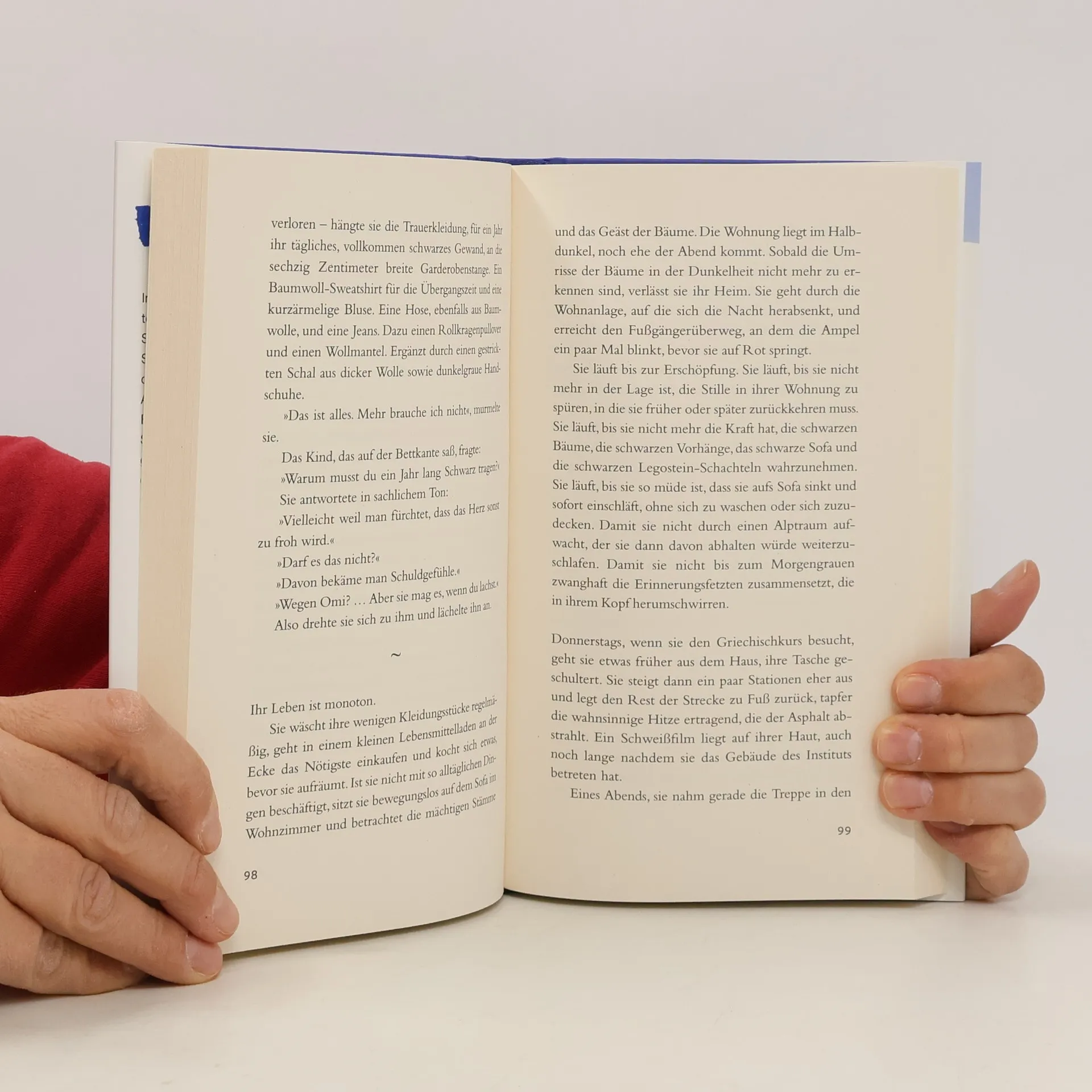 »Griechischstunden« erzählt von zwei gewöhnlichen Menschen, die sich in einem Moment privater Angst begegnen. Han Kang beschreibt die rettende Gnade der Sprache und schafft eine der vielleicht leisesten Liebesgeschichten der Welt. Die Erzählung entfaltet sich in einem Klassenzimmer in Seoul, wo eine junge Frau ihren Griechischlehrer beobachtet. Sie hat ihre Stimme verloren und kann nicht sprechen, während ihr Lehrer, der zunehmend sein Augenlicht verliert, sich zu ihr hingezogen fühlt. Beide tragen tiefen Schmerz in sich: Sie hat sowohl ihre Mutter als auch den Kampf um das Sorgerecht für ihren neunjährigen Sohn verloren, während er zwischen den Kulturen Koreas und Deutschlands hin- und hergerissen ist. Die Verbindung zwischen ihnen wird durch ihre gemeinsamen Erfahrungen und den Austausch von Sprache gestärkt. Han Kangs Erzählstil vereint Brutalität und Poesie, was nur wenigen Autoren gelingt. Ihre Fähigkeit, intensive Emotionen zu vermitteln, zieht die Leser in ihren Bann und lässt sie manchmal die Augen schließen vor der Intensität der Gefühle. Die Entdeckung eines tiefen Gefühls der Einheit zwischen den beiden Protagonisten offenbart sich in der Schönheit ihrer sich überschneidenden Stimmen.