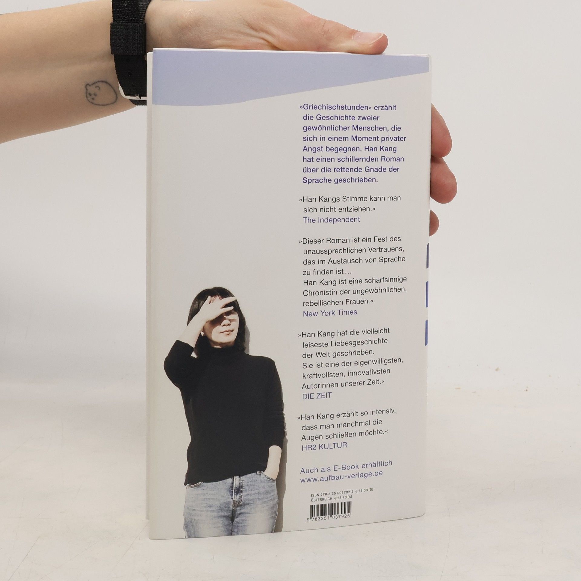 »Griechischstunden« erzählt die Geschichte zweier gewöhnlicher Menschen, die sich in einem Moment privater Angst begegnen. Han Kang hat einen schillernden Roman über die rettende Gnade der Sprache geschrieben. »Die vielleicht leiseste Liebesgeschichte der Welt.« Die Zeit »Han Kangs Stimme kann man sich nicht entziehen.« The Independent »Dieser Roman ist ein Fest des unaussprechlichen Vertrauens, das im Austausch von Sprache zu finden ist... Han Kang ist eine scharfsinnige Chronistin der ungewöhnlichen, rebellischen Frauen. « New York Times »Han Kang erzählt zugleich mit großer Brutalität und großer Poesie – eine Mischung, die nur wenigen Schriftstellern gelingt.« stern »Han Kang erzählt so intensiv, dass man manchmal die Augen schließen möchte.« HR2 Kultur »Han Kang ist eine der eigenwilligsten, kraftvollsten, innovativsten Autorinnen unserer Zeit.« Die Zeit »Griechischstunden« erzählt die Geschichte zweier gewöhnlicher Menschen, die sich in einem Moment privater Angst begegnen. In einem Klassenzimmer in Seoul beobachtet eine junge Frau ihren Griechischlehrer. Sie versucht, zu sprechen, aber sie hat ihre Stimme verloren. Ihr Lehrer fühlt sich zu der stummen Frau hingezogen, denn er verliert von Tag zu Tag mehr von seinem Augenlicht. Bald entdecken die beiden, dass ein tiefer Schmerz sie verbindet. Sie hat in nur wenigen Monaten sowohl ihre Mutter als auch den Kampf um das Sorgerecht für ihren neunjährigen Sohn verloren. Für ihn ist es der Schmerz, zwischen Korea und Deutschland aufzuwachsen, zwischen zwei Kulturen und Sprachen hin- und hergerissen zu sein. Langsam entdecken die beiden ein tiefes Gefühl der Einheit, und ihre Stimmen überschneiden sich mit verblüffender Schönheit.