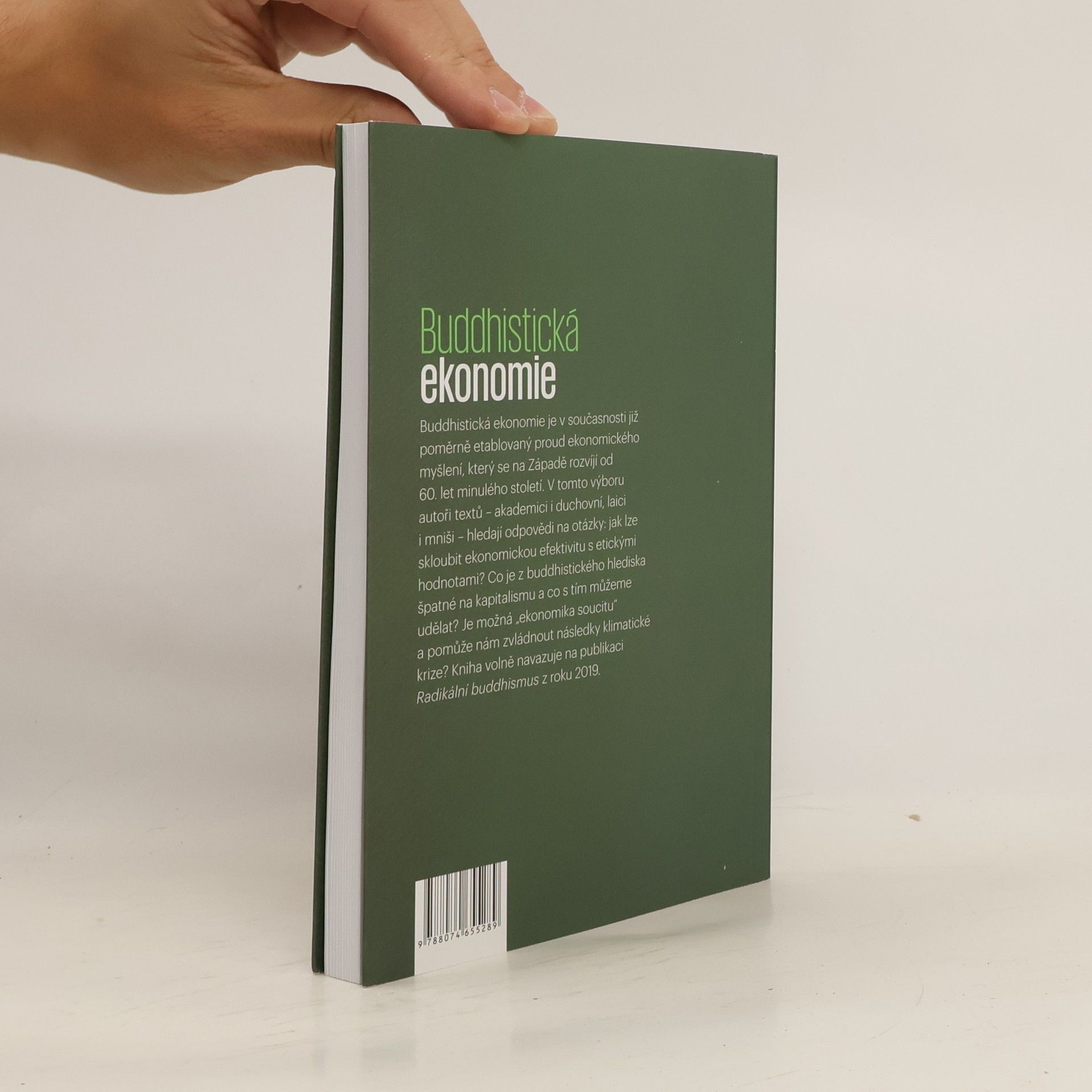 Buddhistická ekonomie je v současnosti již poměrně etablovaný proud ekonomického myšlení, který se na Západě rozvíjí od 60. let minulého století. V tomto výboru autoři textů – akademici i duchovní, laici i mniši – hledají odpovědi na otázky: jak lze skloubit ekonomickou efektivitu s etickými hodnotami? Co je z buddhistického hlediska špatné na kapitalismu a co s tím můžeme udělat? Je možná „ekonomika soucitu“ a pomůže nám zvládnout následky klimatické krize?