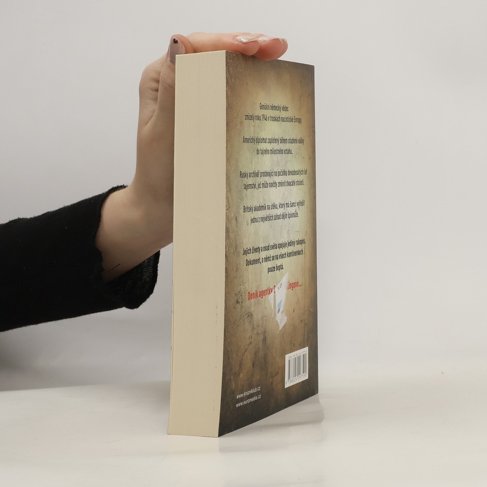 Nejlepší špionážní román roku dle Sunday Times. Geniální německý vědec vyrvaný v roce 1946 z trosek nacistické Evropy. Americký diplomat zapletený během studené války do tajného milostného vztahu. Ruský archivář prodávající na počátku 90. let tajemství, jež může navždy změnit 20. století. Britský akademik na útěku, který má šanci vyřešit jednu z největších záhad dějin špionáže. Jejich příběhy, životy a osud světa spojuje jediný rukopis. Dokument, o kterém se v metropolích po celém světě pouze šeptá. Deník agentky.