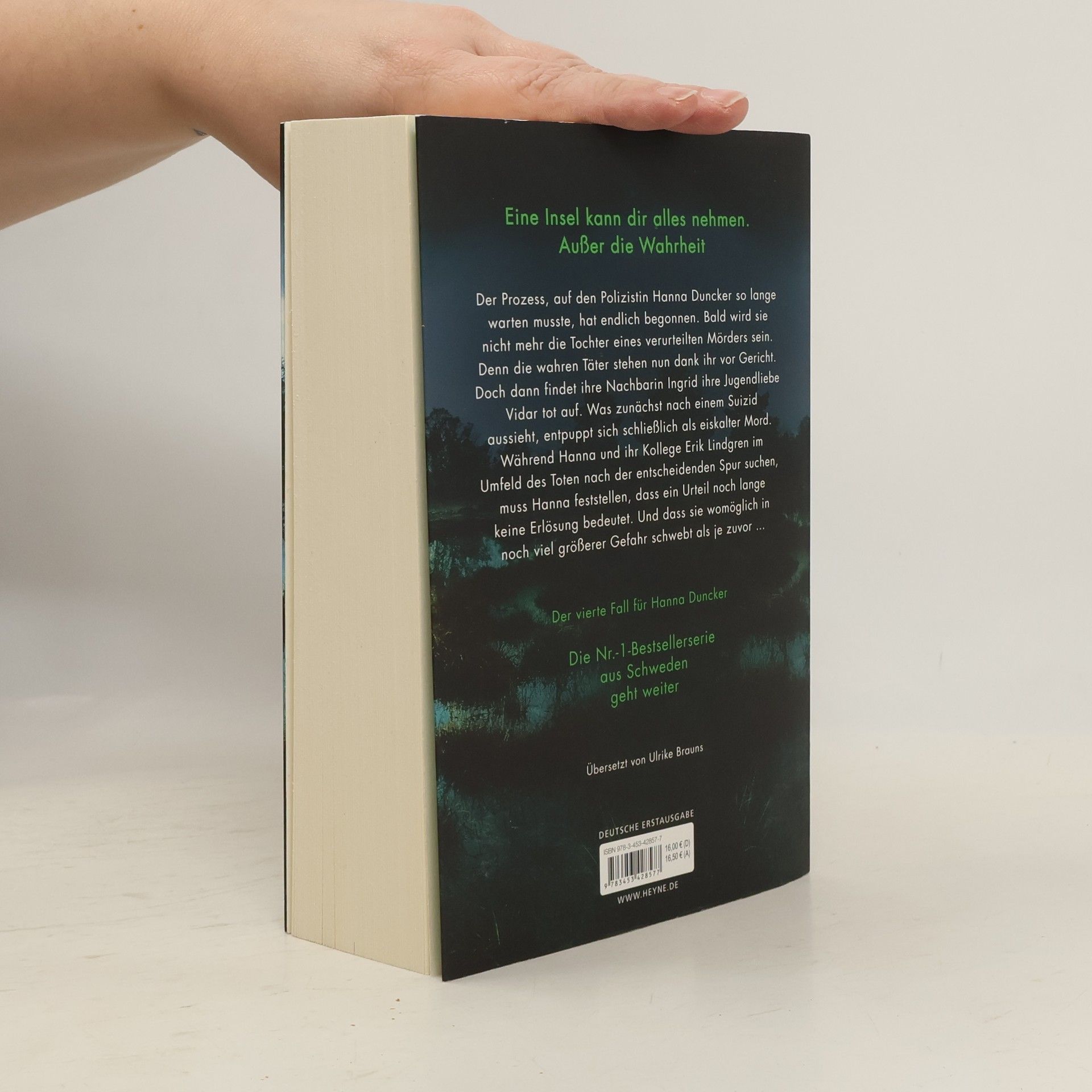 Eine Insel kann dir alles nehmen. Außer die Wahrheit Der Prozess, auf den Hanna so lange warten musste, hat endlich begonnen. Bald wird sie nicht mehr die Tochter eines verurteilten Mörders sein. Denn die wahren Täter stehen nun dank ihr vor Gericht. Doch dann findet ihre Nachbarin Ingrid ihre Jugendliebe Vidar tot auf. Was zunächst nach einem Suizid aussieht, entpuppt sich schließlich als eiskalter Mord. Während Hanna und ihr Kollege Erik im Umfeld des Toten nach der entscheidenden Spur suchen, muss Hanna feststellen, dass ein Urteil noch lange keine Erlösung bedeutet. Und dass sie womöglich in noch viel größerer Gefahr schwebt als je zuvor … Die »Hanna Duncker«-Reihe: Band 1: Nachttod Band 2: Finsterhaus Band 3: Dunkelwald Band 4: Nebelstunde Band 5: Dämmersee Alle Bände können auch unabhängig voneinander gelesen werden