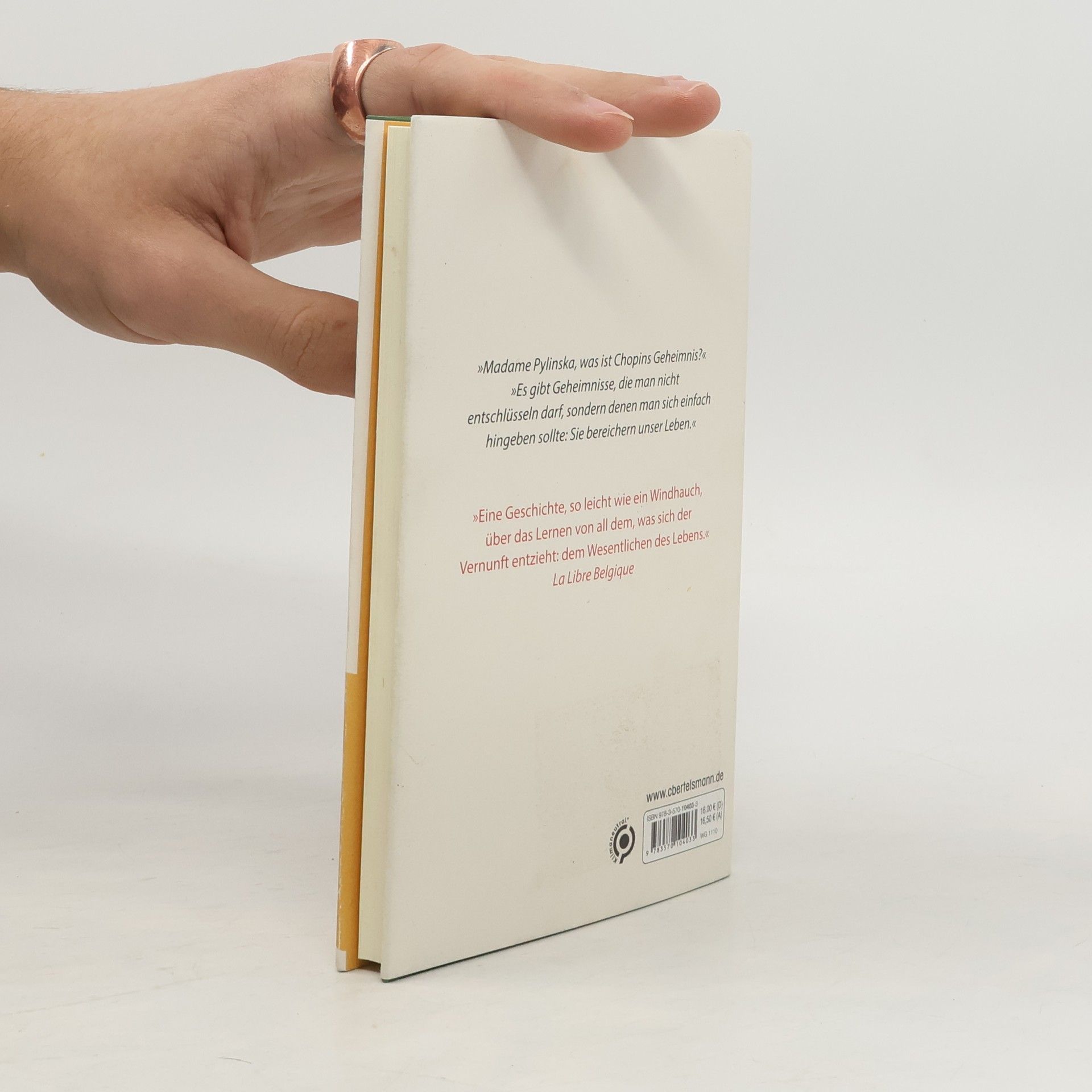 Das neue Buch von Bestsellerautor E.-E. Schmitt – humorvoll und inspirierend Seit Eric als Kind das erste Mal ein Klavierstück von Chopin gehört hat, lässt ihn dessen Musik nicht mehr los. Doch auch nach Jahren des Klavierunterrichts vermag er dem Instrument nicht jene überirdischen Klänge zu entlocken, die ihn damals verzaubert hatten. Schließlich bittet Eric die exzentrische Lehrerin Madame Pylinska um Hilfe. Doch anstatt ihn Klavier spielen zu lassen, mischt sie sich mit ihren kuriosen Unterrichtsmethoden mehr und mehr in seinen Alltag ein, um den etwas linkischen Eric aus der Reserve zu locken. Eric ist alles recht – solang sie ihm hilft, hinter Chopins Geheimnis zu kommen. Doch insgeheim fragt er sich: Lehrt Madame Pylinska ihn wirklich nur das Klavierspiel? Oder nicht vielmehr das Wesentliche des Lebens? Wunderschön illustriert, edel ausgestattet – das ideale Geschenk für alle Sinnsuchenden und Musikliebhaber*innen Ausstattung: 5 zweifarbige Illustrationen