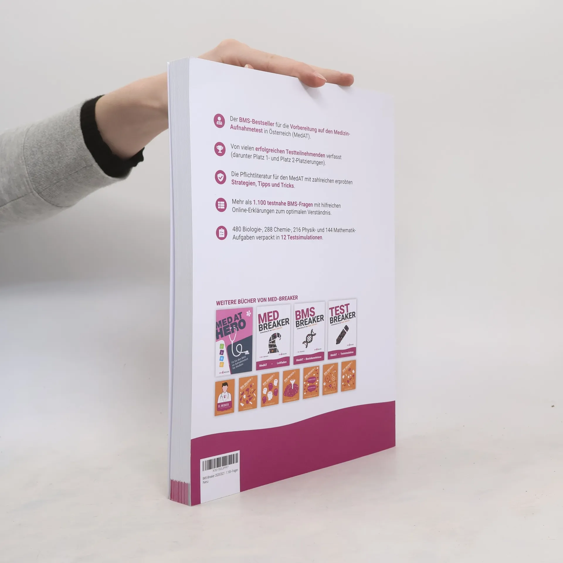 Neuauflage: Neues Design, Erklärungen zu allen Testsimulationen, Lernplan und Strategien von Annika/Christoph (MedAT Platz 1 und 2). Die vier Fächer Biologie, Chemie, Physik und Mathematik bilden das Fundament der medizinischen Ausbildung und des Medizin-Aufnahmetests. Ein Verständnis dieser Grundbausteine ist entscheidend für den späteren Beruf. Der aktuelle Medizinaufnahmetest (MedAT) legt besonderen Wert auf diese Fächer. Der BMS-Breaker und MedAT HERO konzentrieren sich auf den naturwissenschaftlichen Teil, während der SEK-TV-Breaker für Textverständnis und soziale-emotionale Kompetenzen empfohlen wird. Das Hauptbuch, der Med-Breaker, ist für alle anderen Teilbereiche des Aufnahmetests geeignet. ✔ Lösungsstrategien für den Basiskenntnistest Medizinischer Studien (BMS) ✔ Liste sinnvoller Vorbereitungsunterlagen ✔ Zeitplan und Infos zur eigenen Vorbereitung ✔ Aufbau, Ablauf und nützliche Vorbereitungstipps ✔ 480 Biologie-, 288 Chemie-, 216 Physik- und 144 Mathe-Aufgaben im Multiple-Choice-Format ✔ Zwölf BMS-Testsimulationen ✔ Qualitätssicherungsprogramm, Forum und Vergleichsstatistik (online) ✔ Alle Aufgaben basieren auf den Anforderungen des MedAT 2020. NEU: Komplett neues Design, detaillierte digitale BMS-Erklärungen zu jeder Frage auf MEDBREAKER ONE, zwei Lernpläne von Annika und Christoph, eine neue Testsimulation auf Basis des MedAT-2019-Niveaus und 50 neue Übungen. Weitere Infos und eine kostenlose kognitive