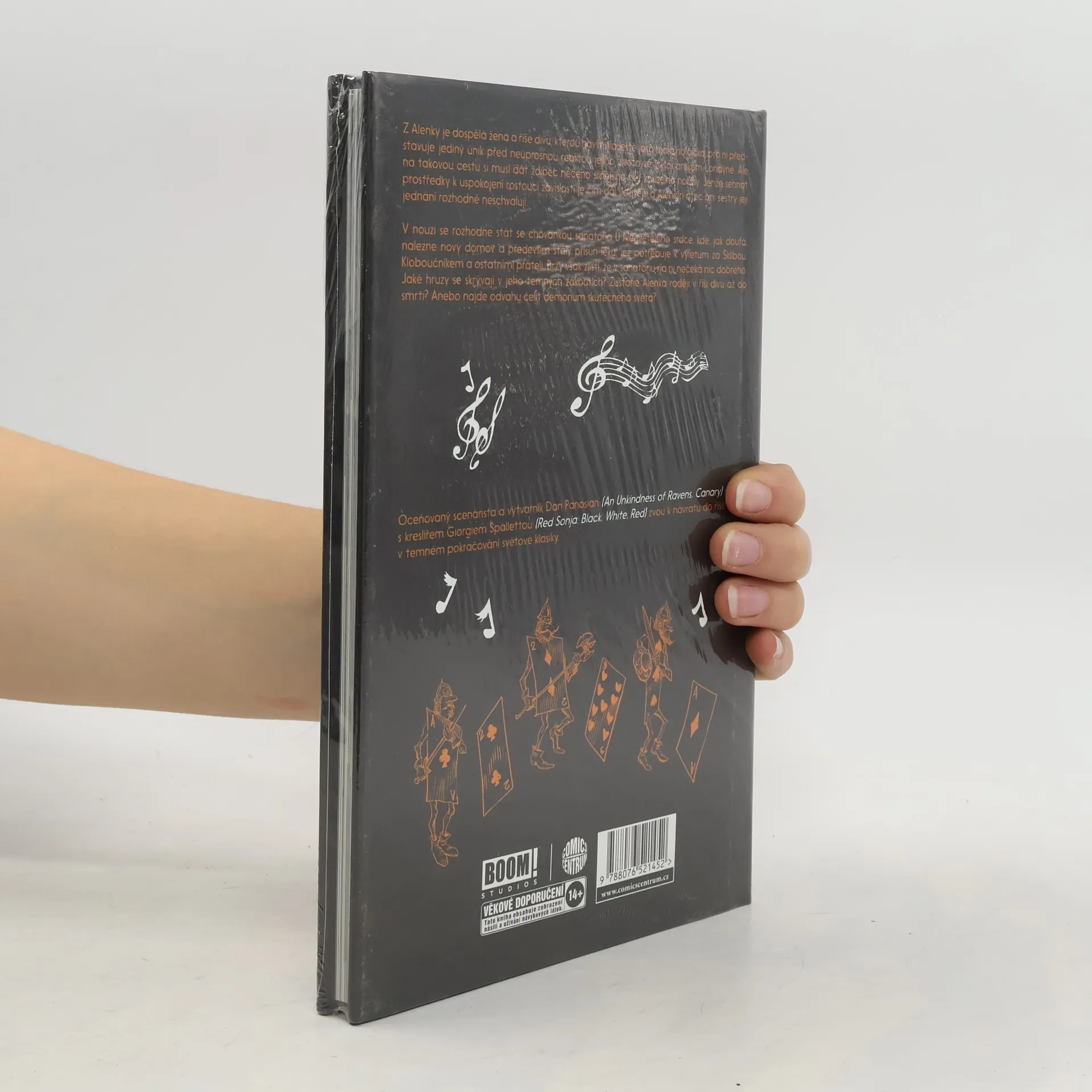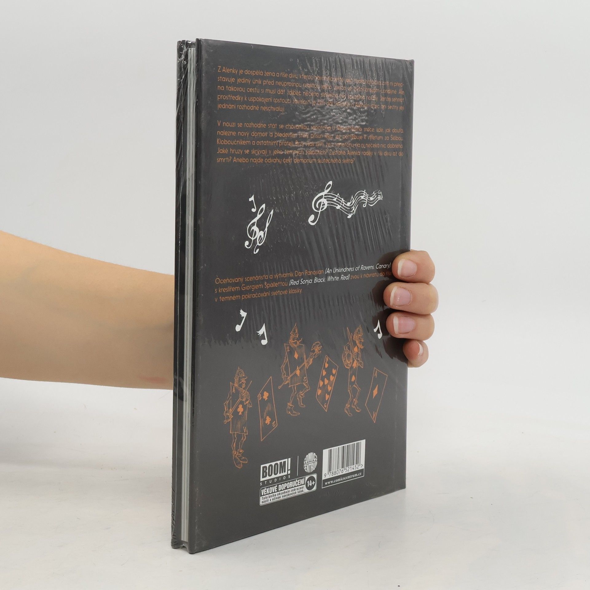 Svérazné a temné komiksové vyprávění o již dospělé Alence z říše divů. Z Alenky je dospělá žena a říše divů, kterou navštívila ještě jako malá holčička, pro ni představuje jediný únik před neúprosnou realitou jejího života ve viktoriánském Londýně. Ale na takovou cestu si musí dát ždibec něčeho silnějšího než kouzelné houby. Jenže sehnat prostředky k uspokojení rostoucí závislosti je čím dál složitější a Alenčin otec ani sestry její jednání rozhodně neschvalují. V nouzi se rozhodne stát se chovankou sanatoria U Nejsvětějšího srdce, kde, jak doufá, nalezne nový domov a především stálý přísun léků, jež potřebuje k výletům za Šklíbou, Kloboučníkem a ostatními přáteli. Brzy však zjistí, že v sanatoriu na ni nečeká nic dobrého. Jaké hrůzy se skrývají v jeho temných zákoutích? Zůstane Alenka raději v říši divů až do smrti? Anebo najde odvahu čelit démonům skutečného světa? Nakladatelská anotace.