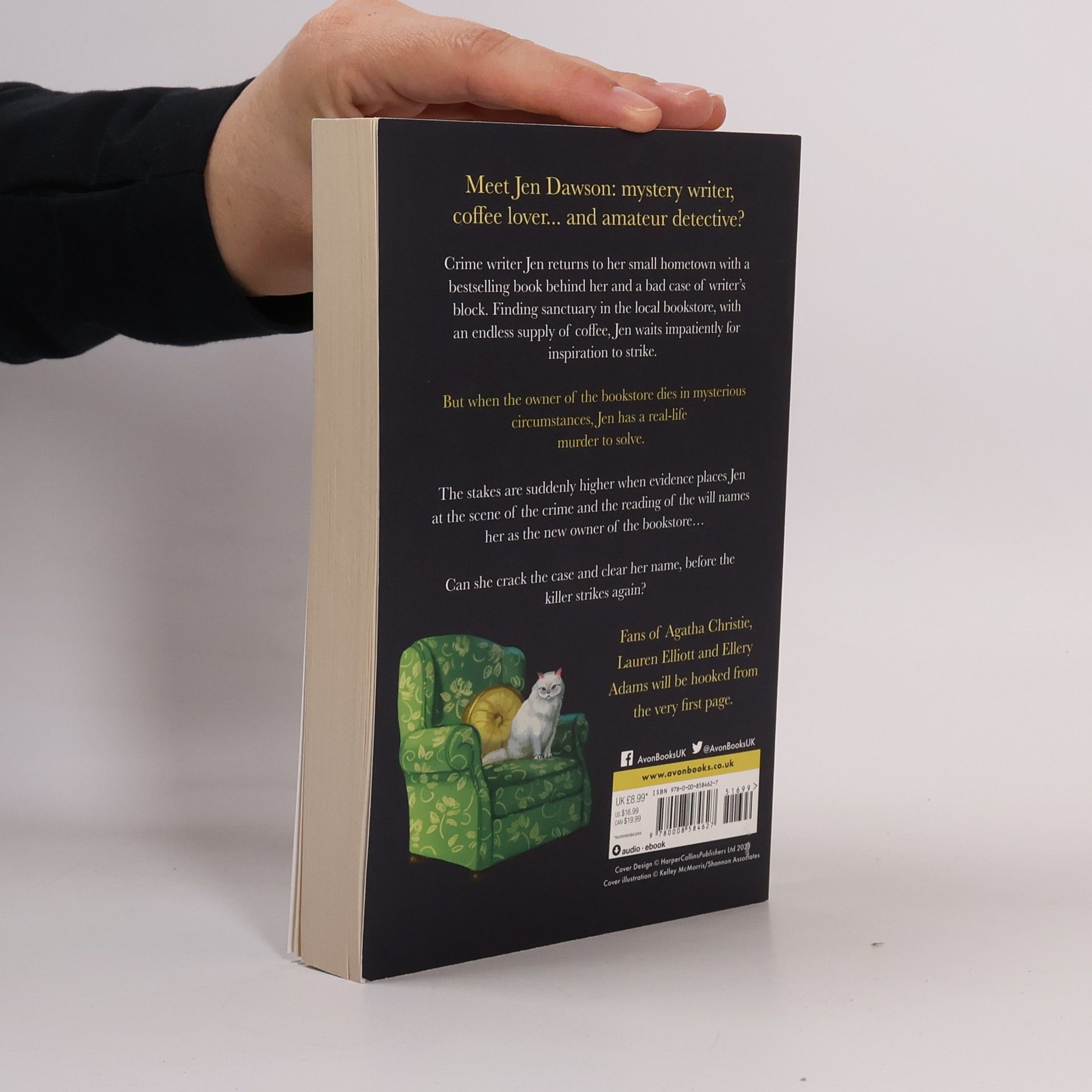 She can write the perfect murder mystery... But can she solve one in real life? Meet Jen Dawson, mystery writer, coffee lover, and amateur detective? Crime writer Jen returns to her small hometown with a bestselling book behind her and a bad case of writer's block. Finding sanctuary in the local bookstore, with an endless supply of coffee, Jen waits impatiently for inspiration to strike. But when the owner of the bookstore dies suddenly in mysterious circumstances, Jen suddenly has a real-life murder to solve. The investigation takes an unexpected turn when evidence places Jen at the scene of the crime and the reading of the will names Jen as the new owner of the bookstore. Can she crack the case and clear her name, before the killer strikes again? Perfect for fans of Agatha Christie, Lauren Elliot and Ellery Adams, this is an absolutely gripping new cozy crime series that will have you hooked from the very first page.